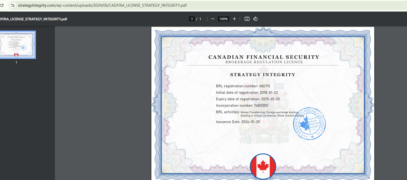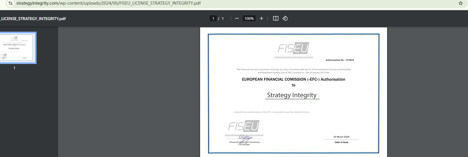 In essence, Strategy Integrity is not regulated by any governing body. Entrusting it with investors' funds is highly risky, as there are no legal protections in place to safeguard the funds. Strategy Integrity appears to be a scam.