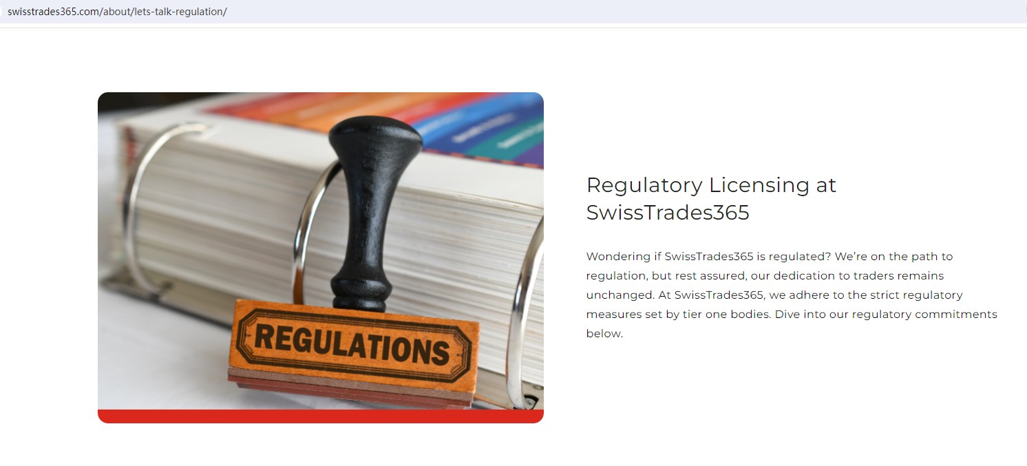 The truth is that SwissTrades365 is not regulated by any regulators. Letting it hold or control investors'money is unsafe, and the money can not be protected by any laws.
