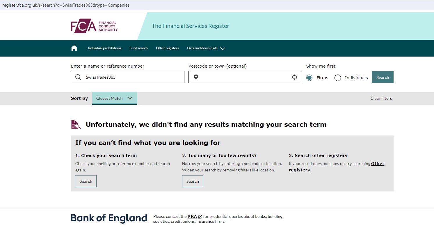 SwissTrades365 claims to be a Forex & CFDs brokerage, offering wide range of financial services, including Forex, Metals, Indices, Cryptocurrencies, Energies, Shares and more instruments in global markets, and adheres to guidelines from leading regulatory bodies like the United Kingdom Financial Conduct Authority (FCA), the Cyprus Securities and Exchange Commission (CySEC), and the Australian Securities & Investment Commission (ASIC). But our search of the FCA, CySEC, and ASIC yielded no results. And the Federal Financial Supervisory Authority (BaFin) issued a warning against swisstrades365.com, believing the company Ninety One Group Ltd is providing financial and investment services on this website without the required authorisation.The truth is that SwissTrades365 is not regulated by any regulators. Letting it hold or control investors'money is unsafe, and the money can not be protected by any laws.SwissTrades365 is a scam.