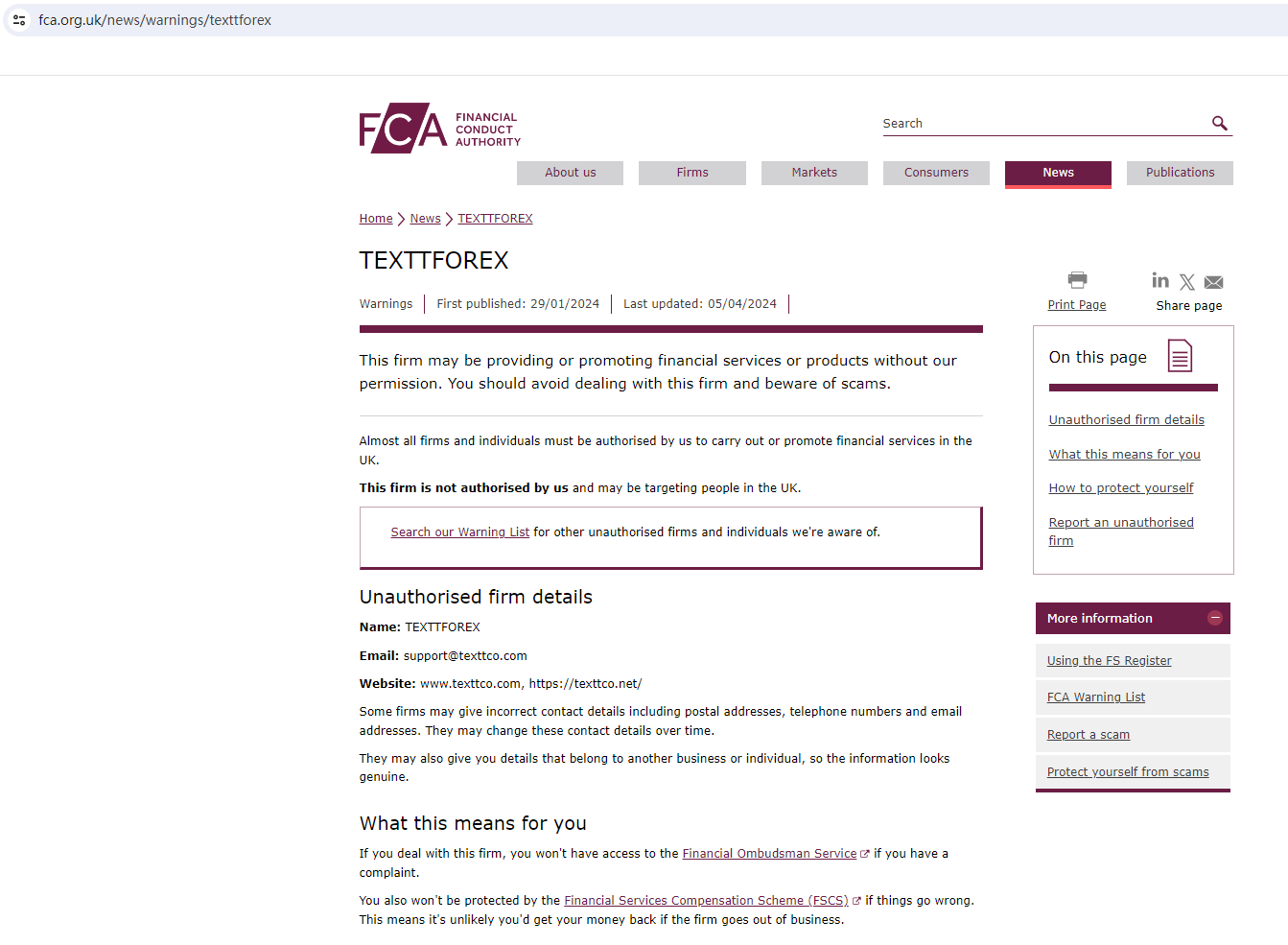 Furthermore, the Financial Conduct Authority (FCA) has issued a warning against TEXTTFOREX for providing financial services to UK residents. This implies that TEXTTFOREX is operating unlawfully in the UK.