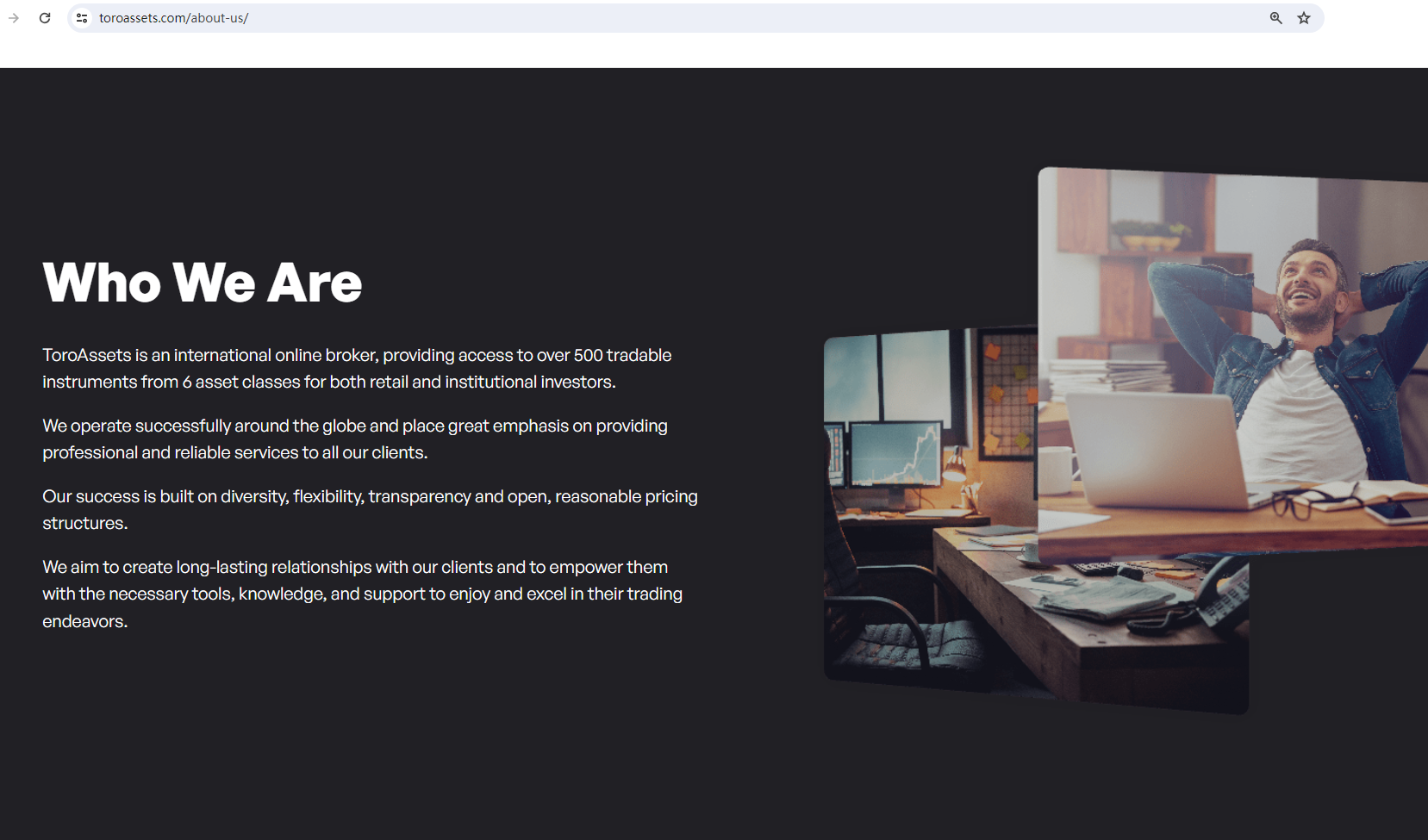 BrokersView found that the domain "https://www.toroassets.com/" is currently inaccessible. This is widely regarded as a significant red flag, as the suspension of a broker's website often points to underlying regulatory or operational issues.