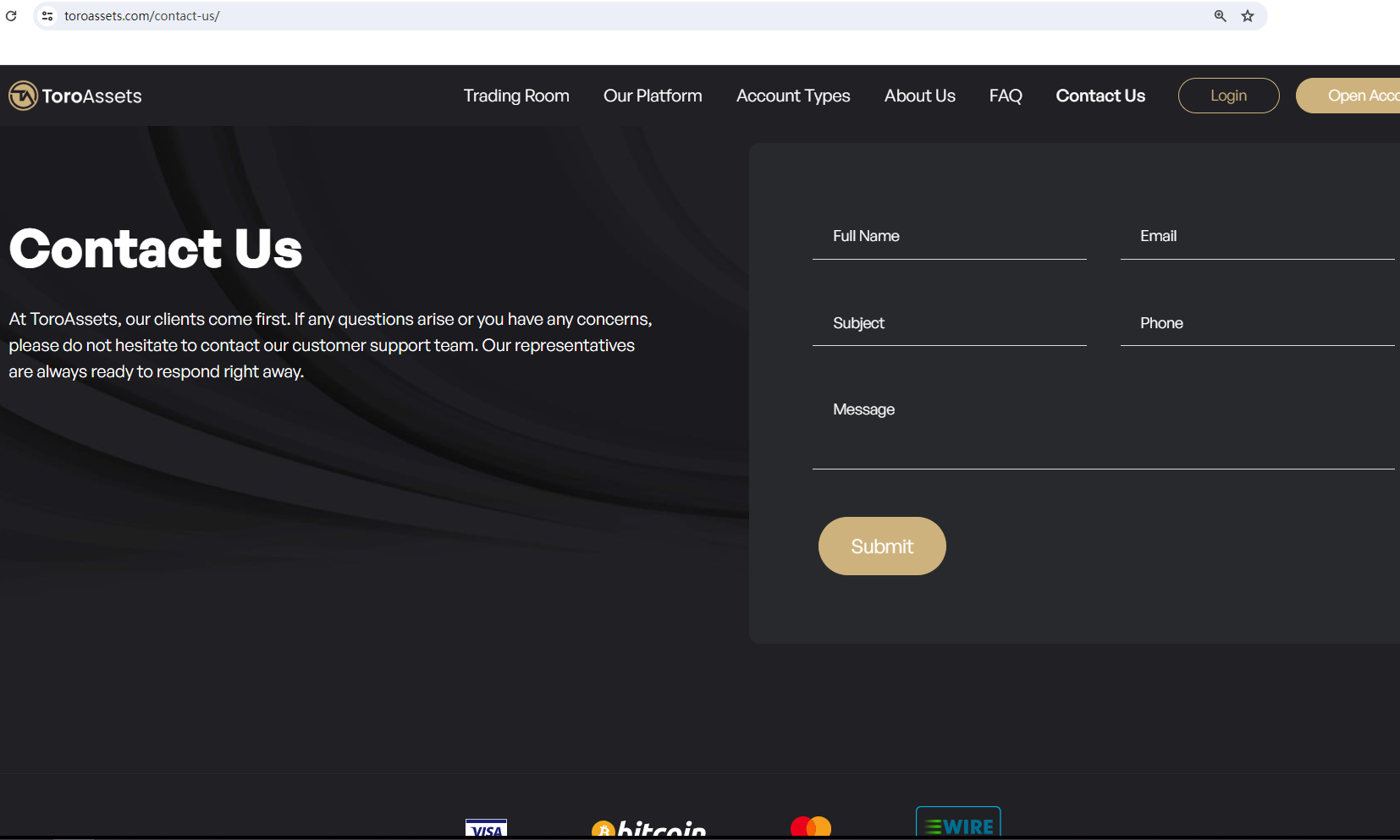 The truth is that TOROASSETS is not regulated by any regulators. Letting it hold or control investors' money is unsafe, and the money can not be protected by any laws.