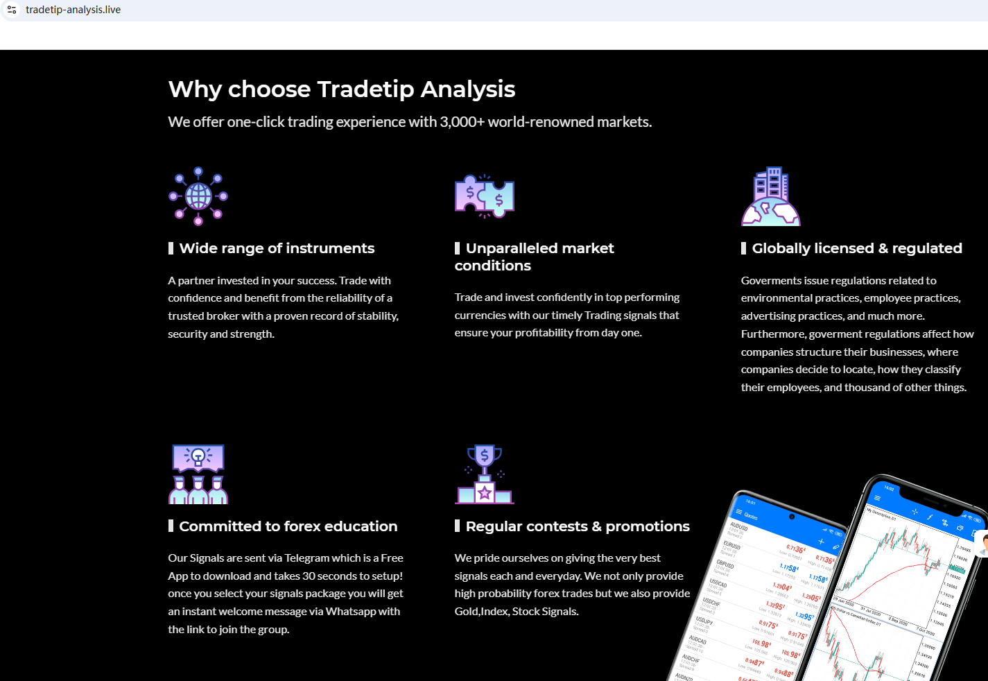 In essence, TRADETIPS is not regulated by any governing body. Entrusting it with investors' funds is highly risky, as there are no legal protections in place to safeguard the funds.