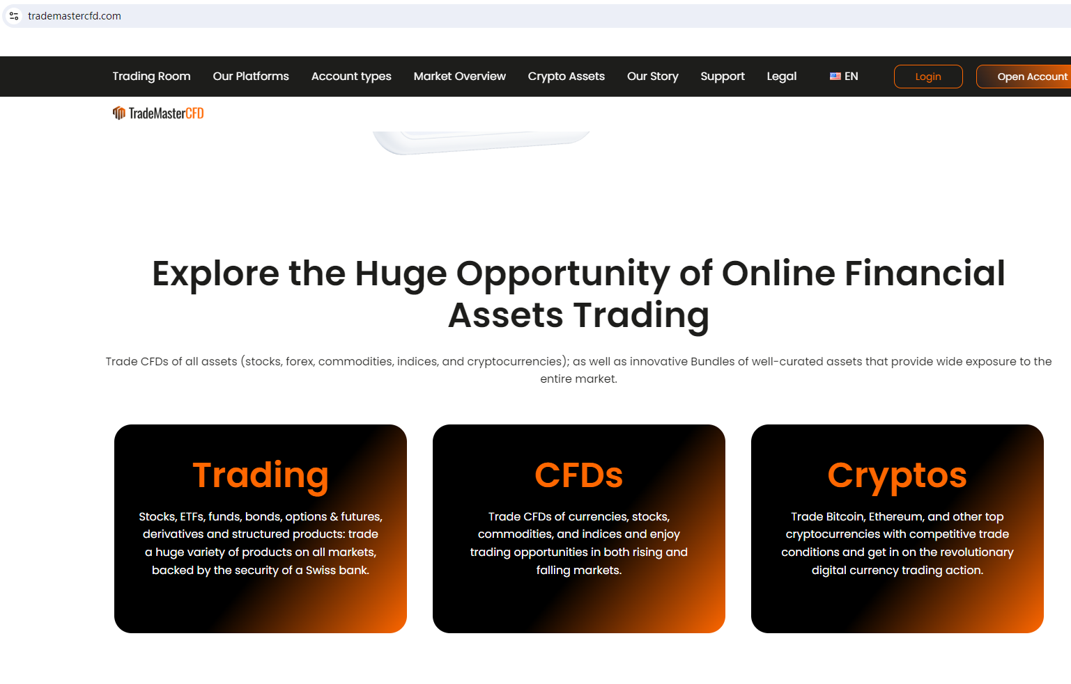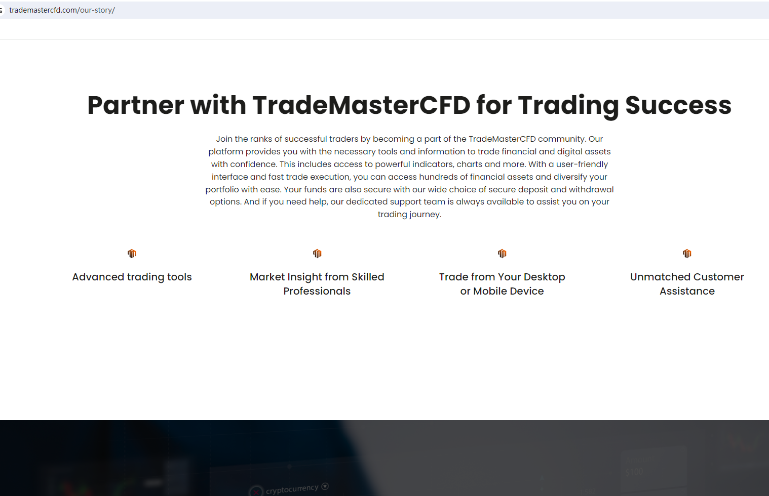 On August 21, 2024, the Federal Financial Supervisory Authority (BaFin) warned consumers about the website trademastercfd.com, stating that the financial and investment services are being provided on this website without the required authorization. https://www.bafin.de/SharedDocs/Veroeffentlichungen/EN/Verbrauchermitteilung/unerlaubte/2024/meldung_2024_08_16_Betreten_Sie_selbstbewusst_die_Handelsarena_en.html;jsessionid=884AE22D861F23007F66BBA1F68DFC7D.internet001