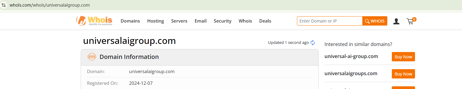 UniversalAiGroup presents itself as an established broker. However, its domain name was only registered in December 2024, raising doubts about its credibility. The company does not provide any substantial information regarding its legitimacy or regulatory status. The supposed office address in Switzerland is shared by numerous firms and can be used as a virtual office. Furthermore, the British Columbia Securities Commission (BCSC) has issued a warning against UniversalAiGroup, stating that this broker is not registered to trade in, or advise on, securities or derivatives in BC. In summary, UniversalAiGroup operates without regulation by any governing body. Entrusting your funds to this broker is highly risky, as there are no legal protections in place to safeguard your investments. Given these factors, UniversalAiGroup appears to be a scam.