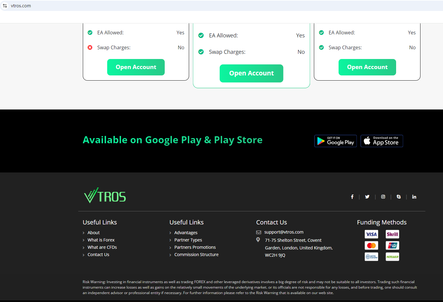 According to its website, it is located in the UK. Upon investigation, no matching information was found in the Financial Conduct Authority (FCA).The truth is that Vtros is not regulated by any regulators. Letting it hold or control investors'money is unsafe, and the money can not be protected by any laws.Vtros is a scam.