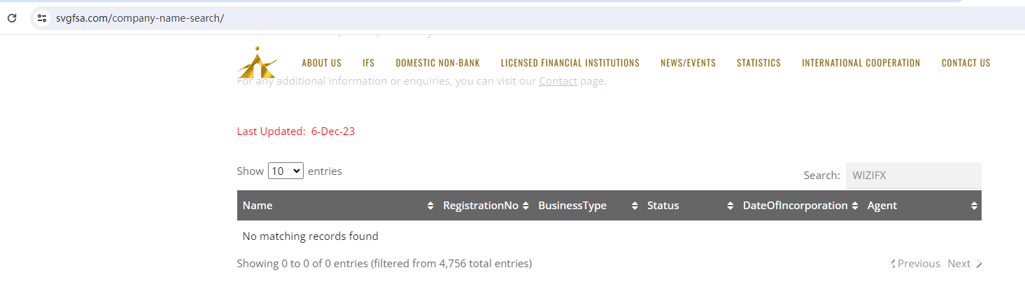 Wizifx claims to be registered in Financial Services Authority (FSA) of Saint Vincent and the Grenadines, but we don't find any results on FSA of Saint Vincent and the Grenadines matching to Wizifx. What's more, FSA of Saint Vincent and the Grenadines doesn't regulate forex or issue forex licenses.The truth is that Wizifx is not under valid regulation by any regulators to do forex. Investors' funds in this broker are unsafe and cannot be protected by any law.Wizifx is a scam.