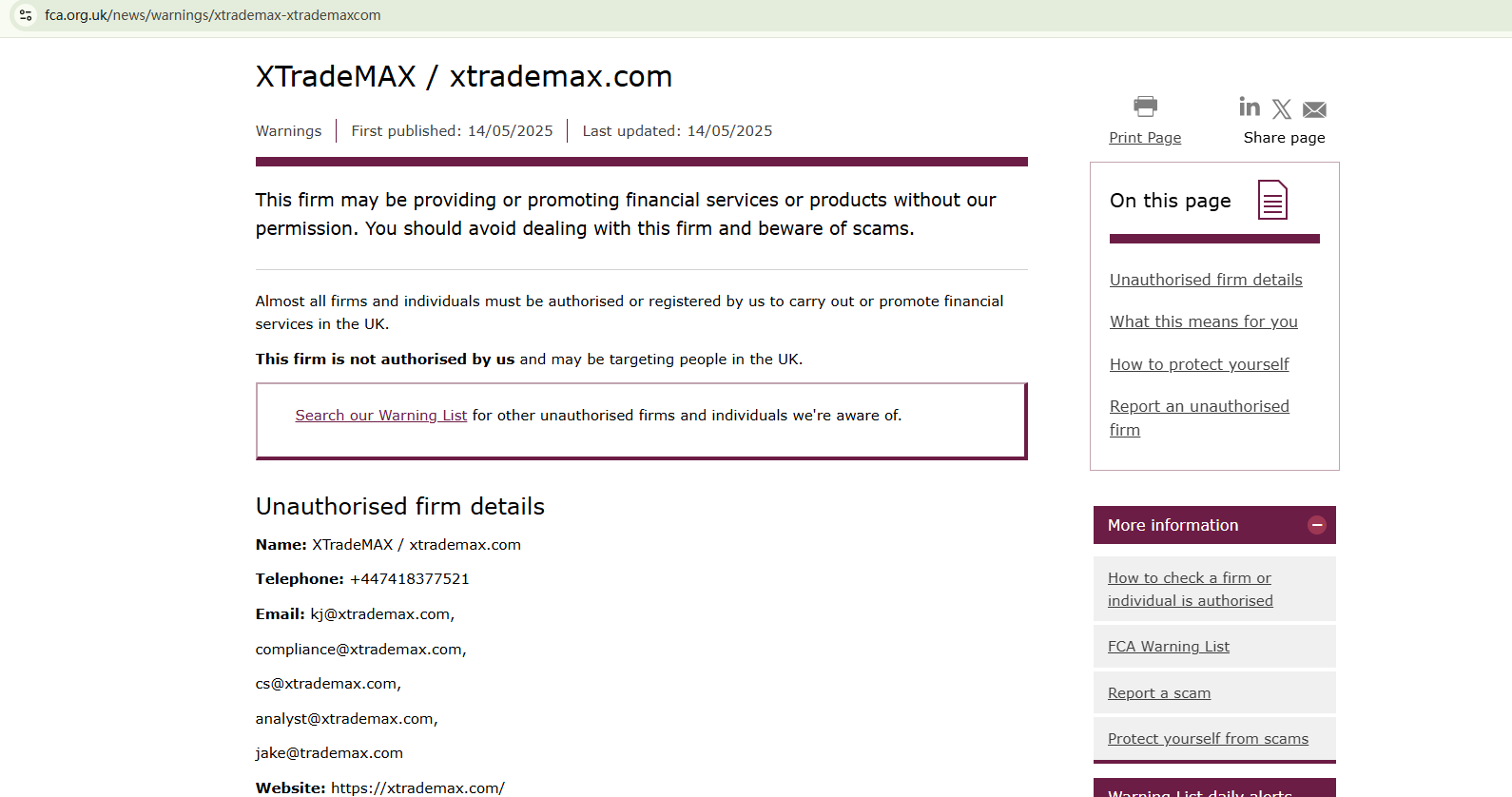 In essence, XTradeMAX is not regulated by any governing body. Entrusting it with investors' funds is highly risky, as there are no legal protections in place to safeguard the funds. XTradeMAX appears to be a scam.
