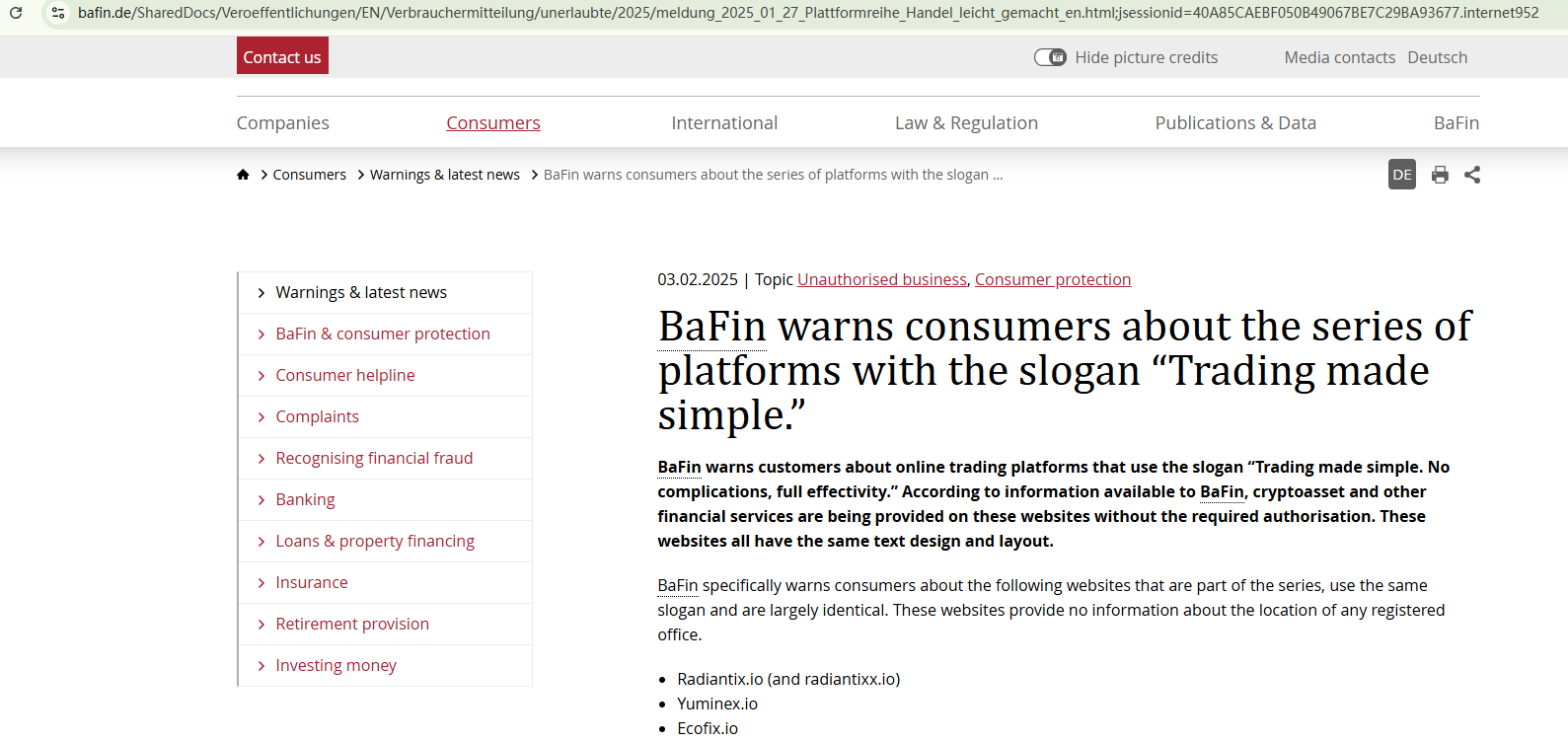 The website of Yuminex is relatively new, with the domain name registered in August 2024. We haven't found any useful information to suggest that the company is registered or licensed. The Federal Financial Supervisory Authority (BaFin) has issued a warning about Yuminex for providing investment services without the required authorization, which is a major red flag.