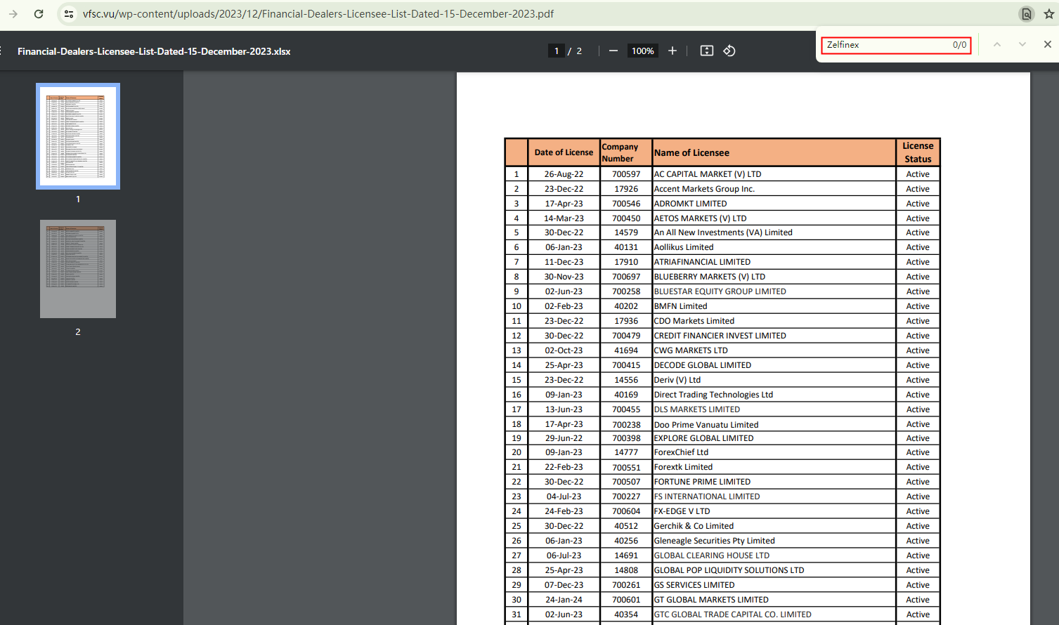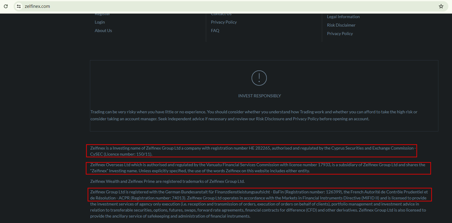 While ZELFINEX marks itself as a licensed broker and claims to be regulated by the Vanuatu Financial Services Commission (VFSC), the Financial Authority (Autorité des Marchés Financiers, AMF), the Federal Financial Supervisory Authority (BaFin), the Cyprus Securities and Exchange Commission (CySEC), it turned out to be a fake trading platform and a case of identity theft.