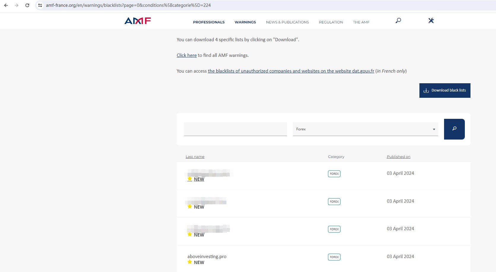 the Financial Authority (Autorité des Marchés Financiers, AMF) issued a warning that aboveinvesting.pro was providing finacial services or products without authorisation.
