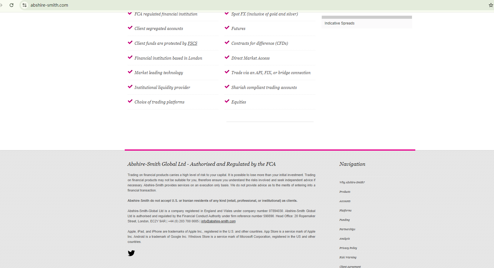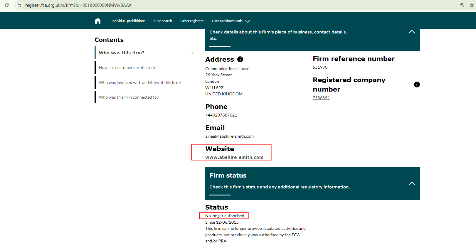 Abshire Smith claims to be operated by Abshire-Smith-Global Ltd, allegedly with the FRN 590890 issued by the Financial Conduct Authority (FCA). However, our verification with the FCA indicates that the company, as well as this website, is no longer authorized by the FCA. This means Abshire Smith is not regulated.