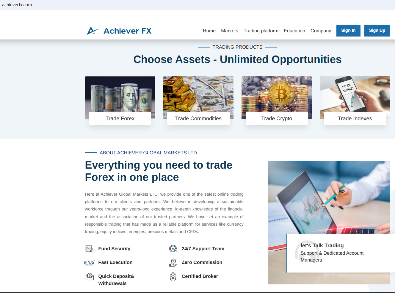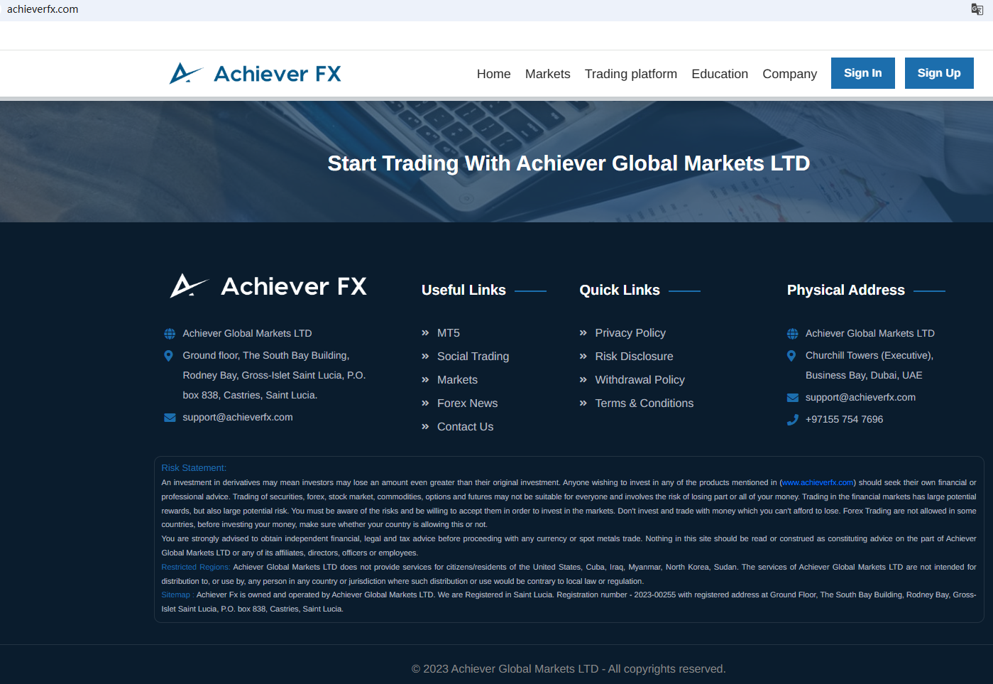 In essence, Achiever Global Markets is not regulated by any governing body. Entrusting it with investors' funds is highly risky, as there are no legal protections in place to safeguard the funds. Achiever Global Markets appears to be a scam.