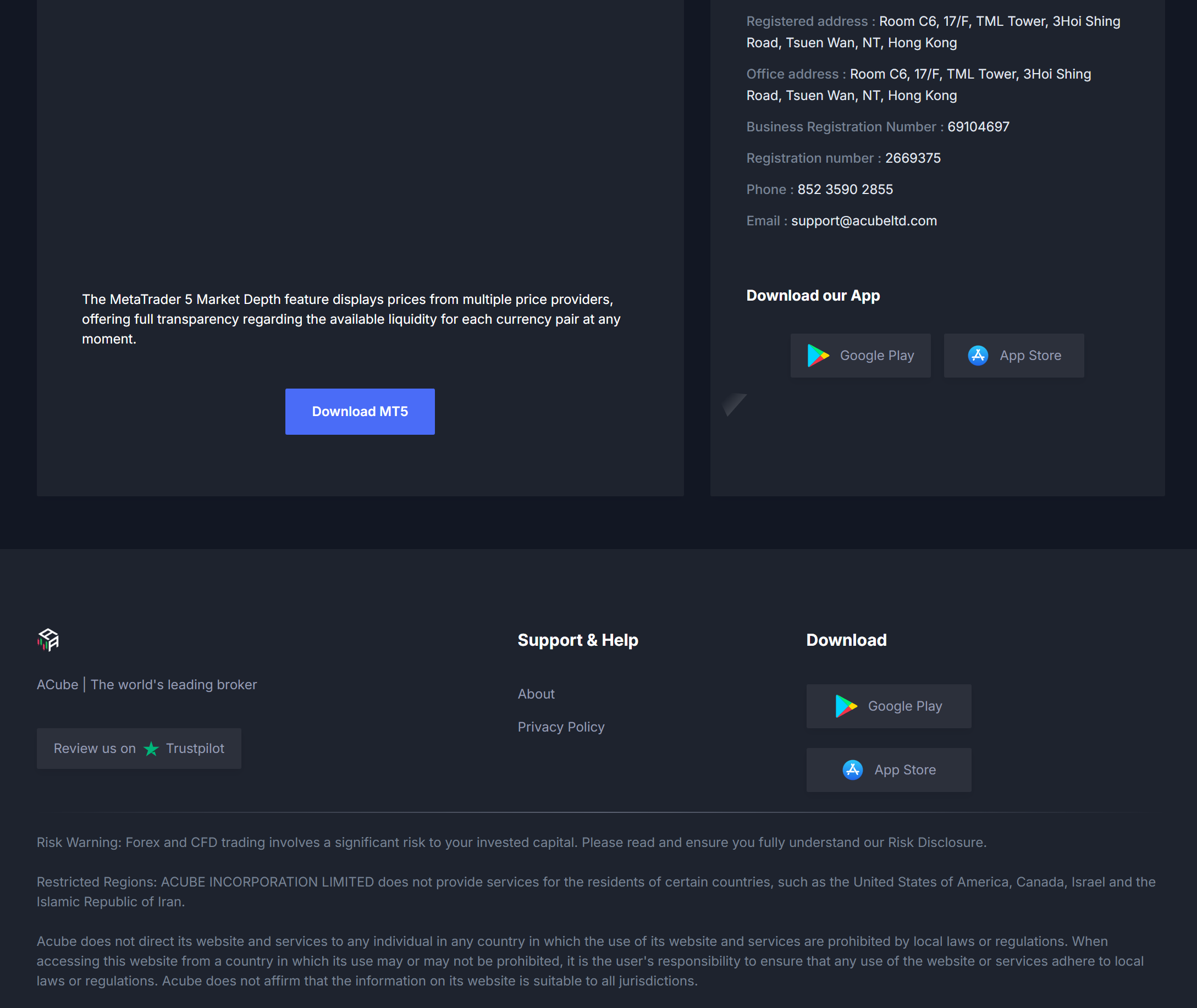 ACube’s website provides no regulatory disclosures, only claims that it was registered in Hongkong.