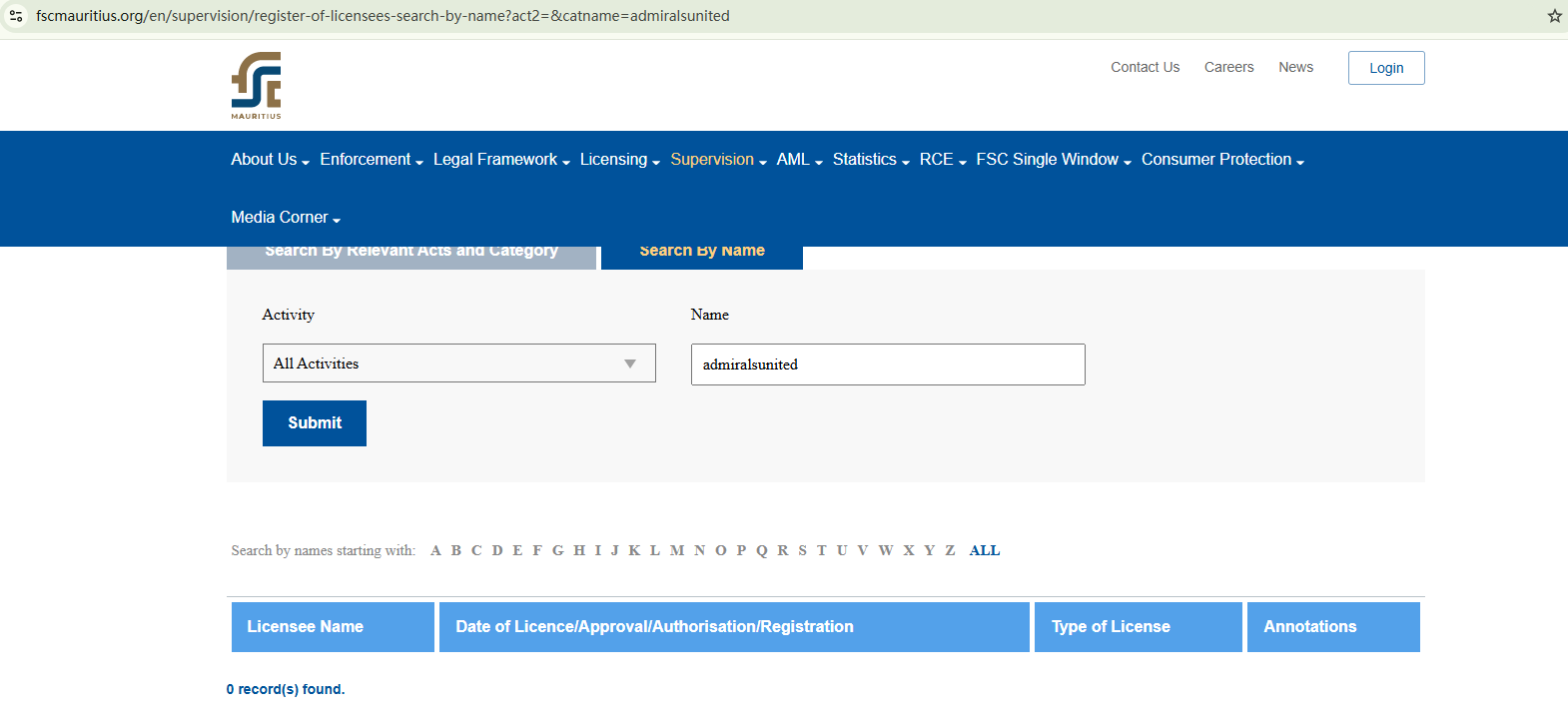 • 2024-10-31 BrokersView has reviewed that AdmiralsUnited is an unregulated broker