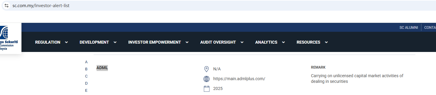 On Dec 30, 2025, the Securities Commission Malaysia (SC) issued a warning regarding ADML, suspecting that this company may be offering financial services or products without the necessary authorization. https://www.sc.com.my/investor-alert-list