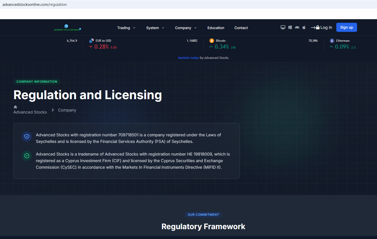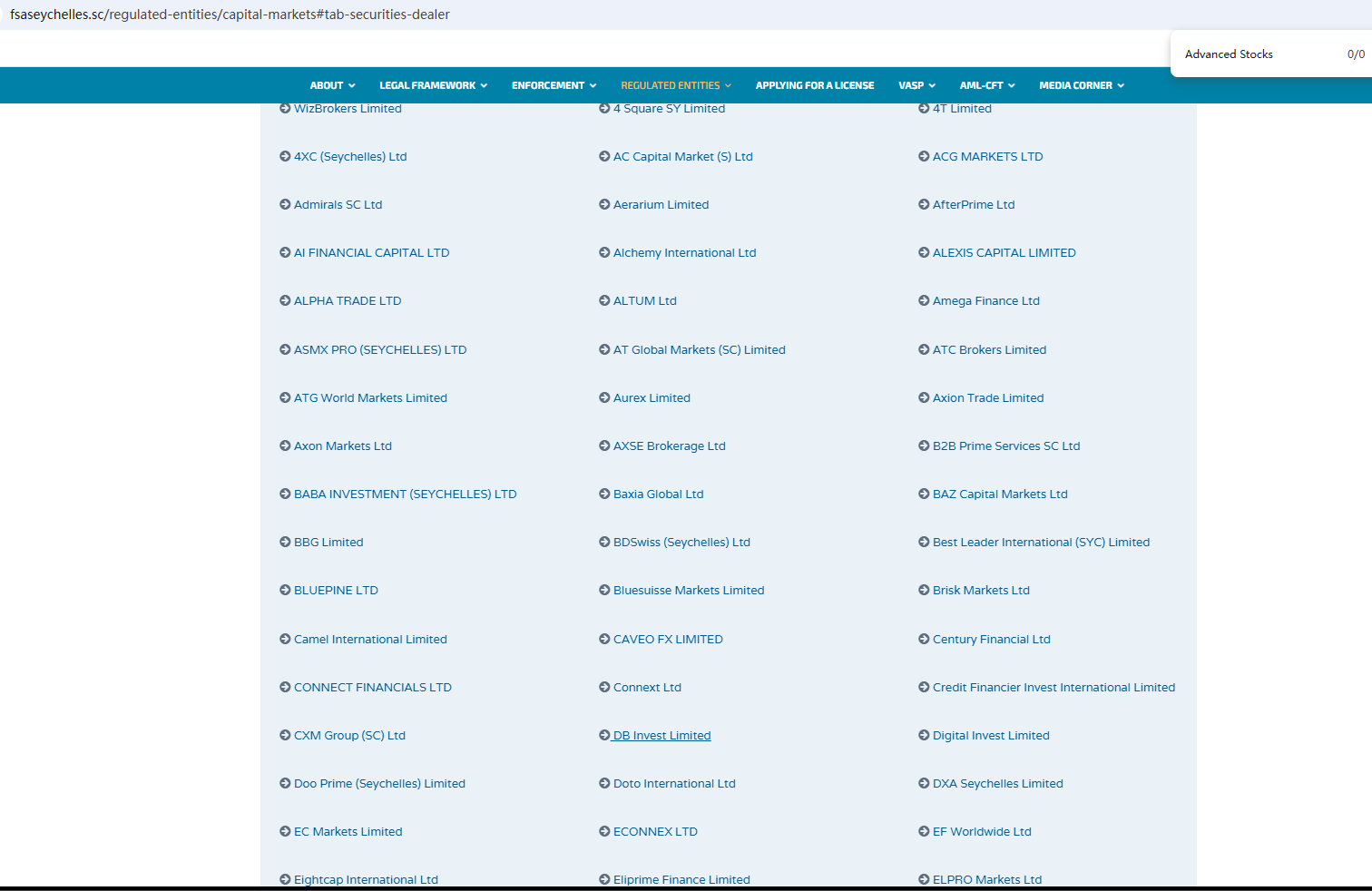 According to its website, it claims to be regulated by the Seychelles Financial Services Authority (Seychelles FSA) and the Cyprus Securities and Exchange Commission (CySEC). Upon investigation, no matching information was found in the Seychelles FSA and CySEC. In addition, the Financial Conduct Authority (FCA) issued a warning regarding Advanced Stocks, suspecting that this company may be offering financial services or products without the necessary authorization.