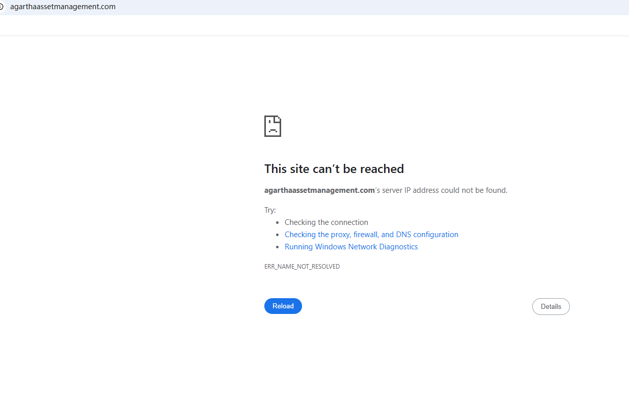 BrokersView found that the domain "https://agarthaassetmanagement.com/" is currently inaccessible. This is widely regarded as a significant red flag, as the suspension of a broker's website often points to underlying regulatory or operational issues.