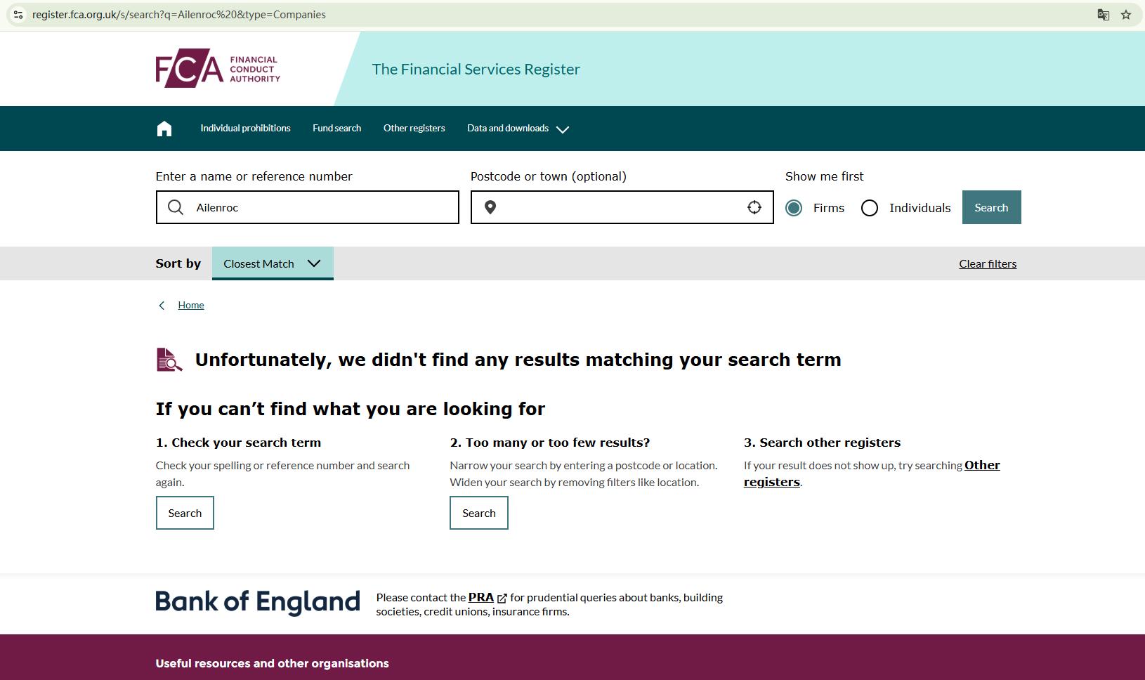 Ailenroc claims to be authorized by the Financial Conduct Authority (FCA). However, our search of the official FCA licensee register found no record of it or the stated licence. This discrepancy strongly suggests that the firm’s regulatory claims are inaccurate or deliberately misleading.