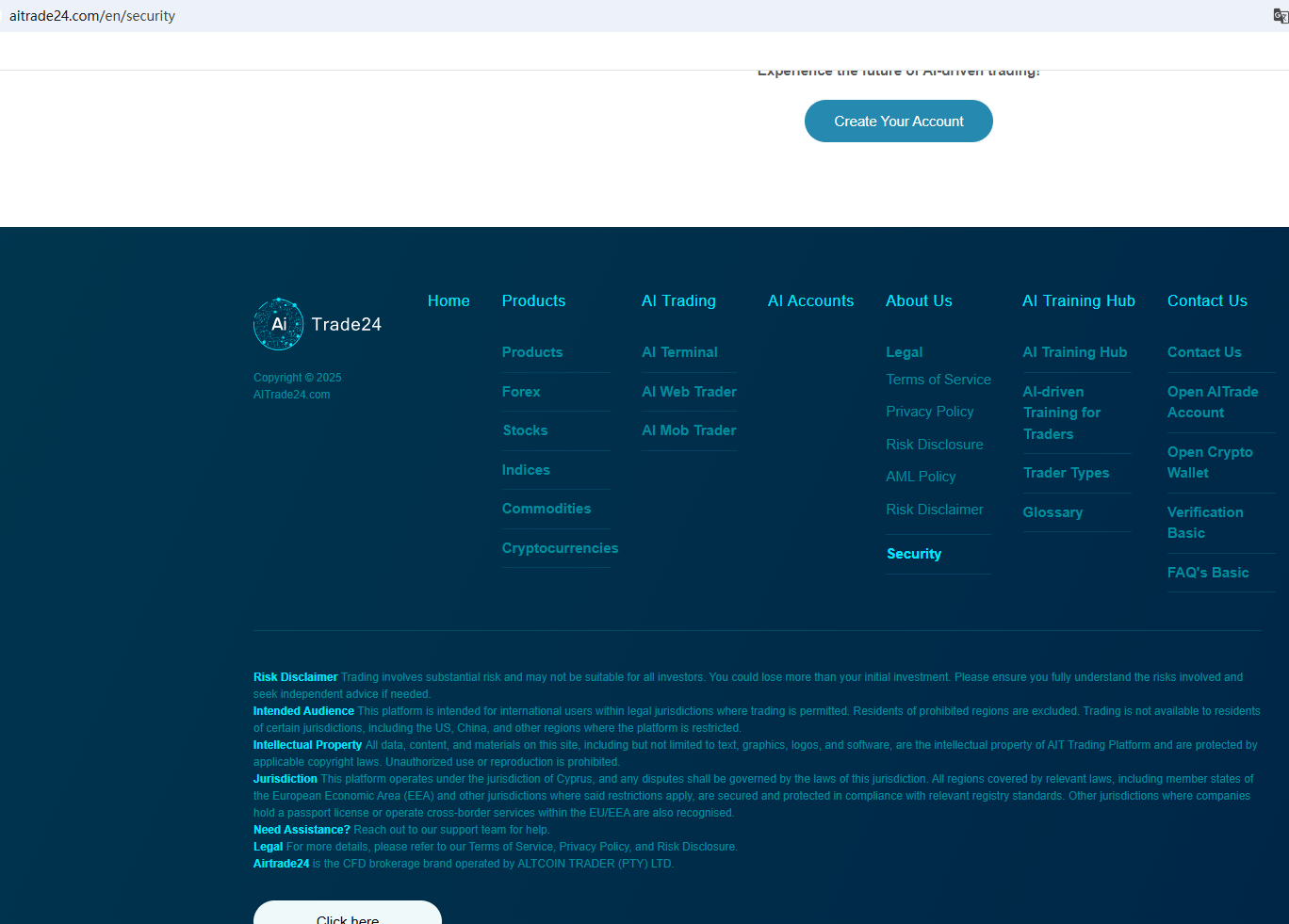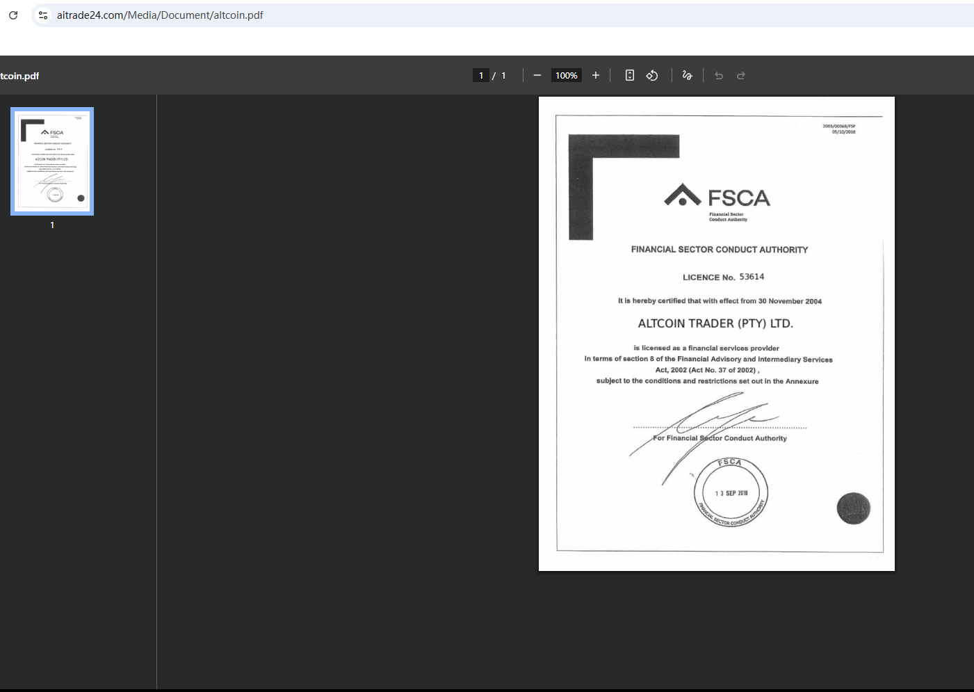 According to its website, Airtrade24 claims to be a reliable company. It is a CFD brokerage brand operated by Altcoin Trader (PTY) Ltd. and regulated by the Financial Conduct Authority (FSCA). Upon inquiry, we found that Altcoin Trader (PTY) Ltd. is regulated by the FSCA. However, there is no evidence that Airtrade24 has any substantial connection with Altcoin Trader (PTY) Ltd. A single statement on Airtrade24's website alone is insufficient evidence. Furthermore, the Italian Companies and Exchange Commission (CONSOB) ordered Airtrade24 to be blacked out since it offers financial services illegally in Italy.