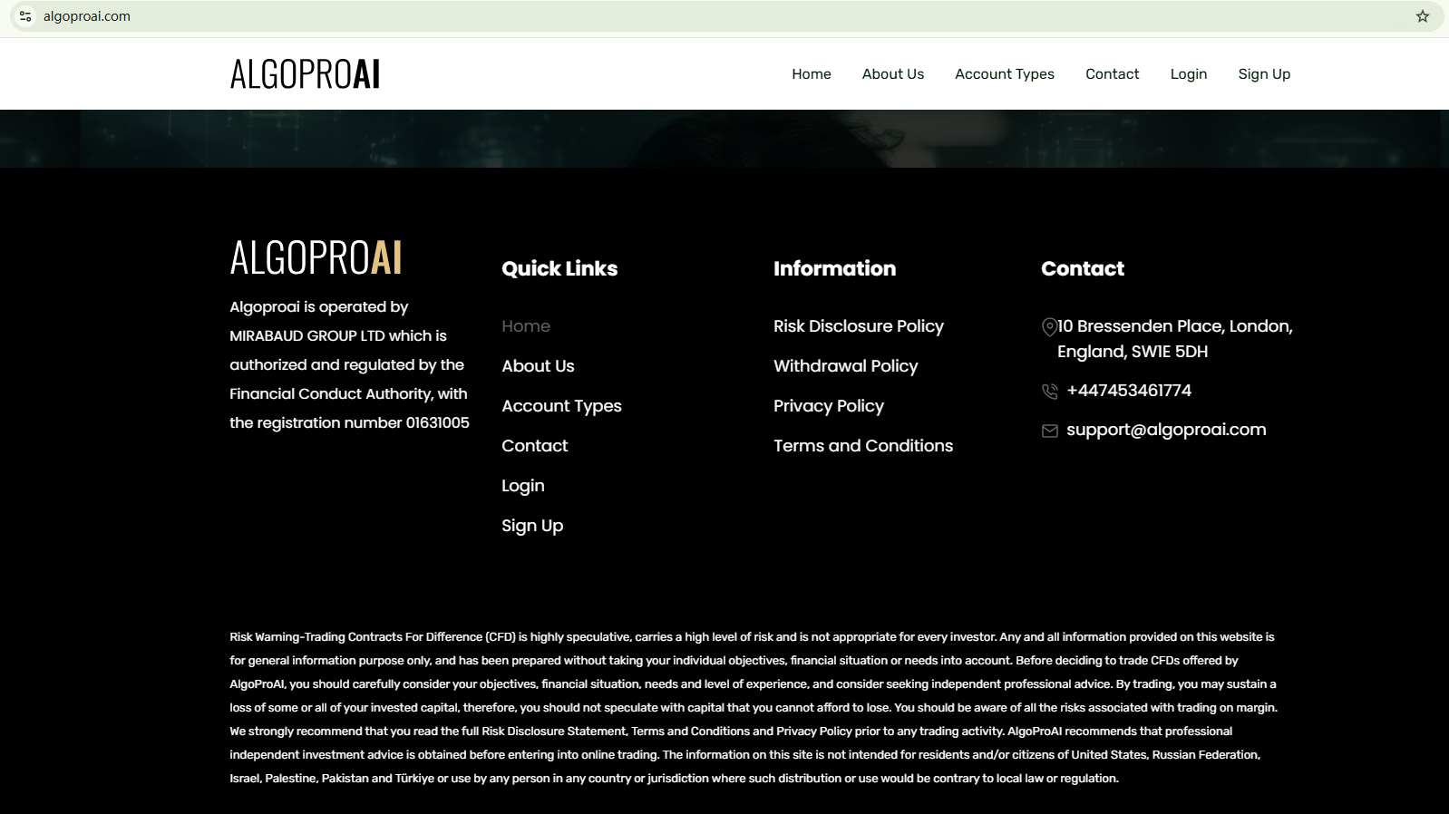 Algoproai (Mirabaud Group Ltd) appears to be a scam.