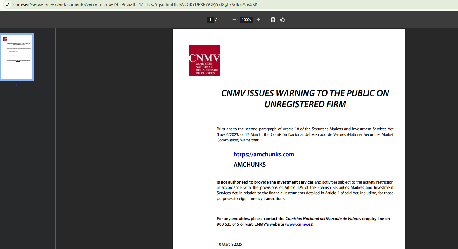 In addition, the Financial Conduct Authority (FCA) issued a warning against AMCHUNKS, believing this company might be providing financial services or products without proper authorization in the UK.