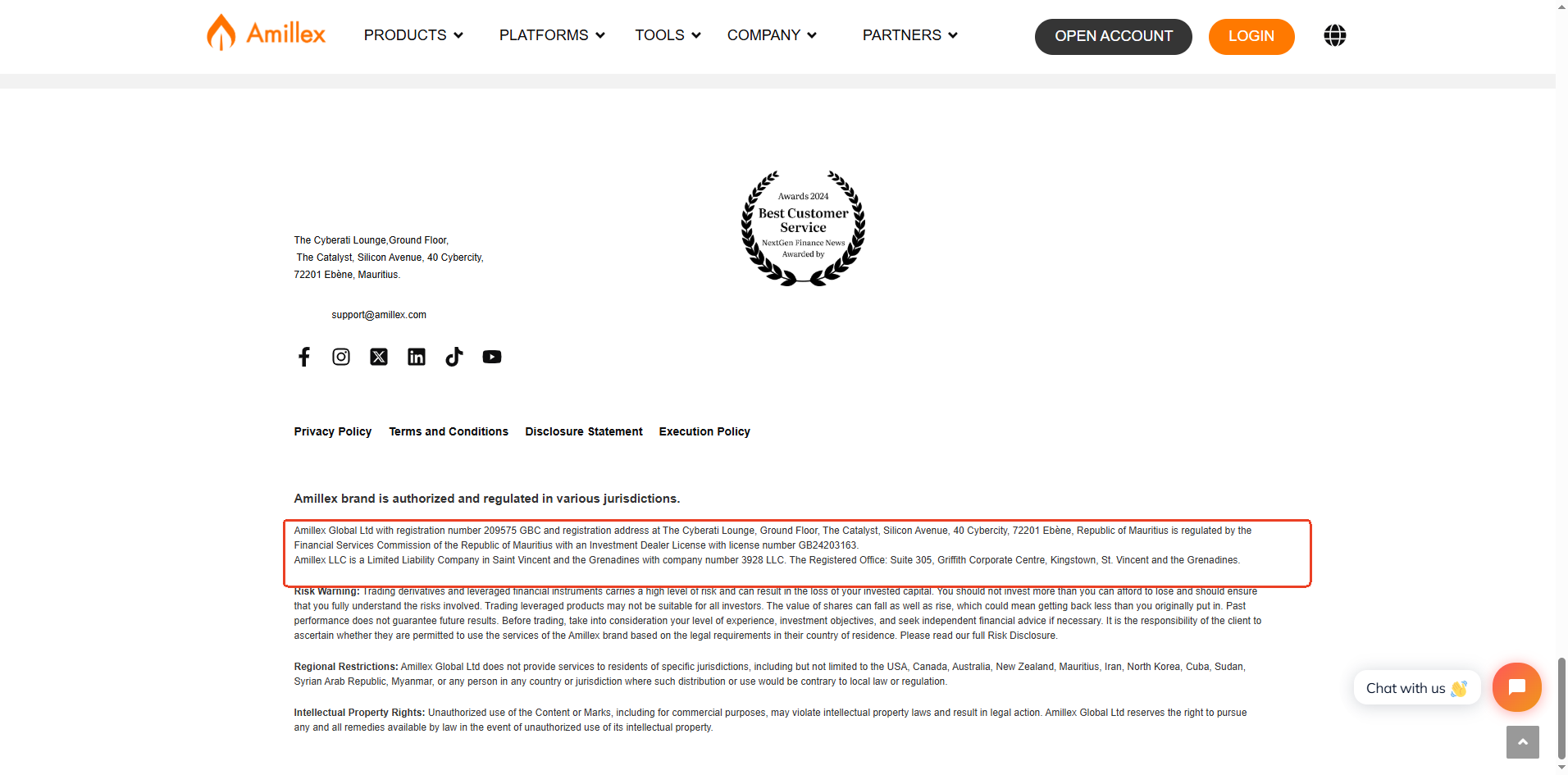 Amillex states that it is operated by Amillex Global Ltd and regulated by the Financial Services Commission (FSC) of Mauritius. However, our thorough search within the official FSC Mauritius registry has failed to locate any licensing or authorization records for Amillex Global Ltd. This absence of verification from the claimed regulator casts substantial doubt on the validity of their regulatory status.