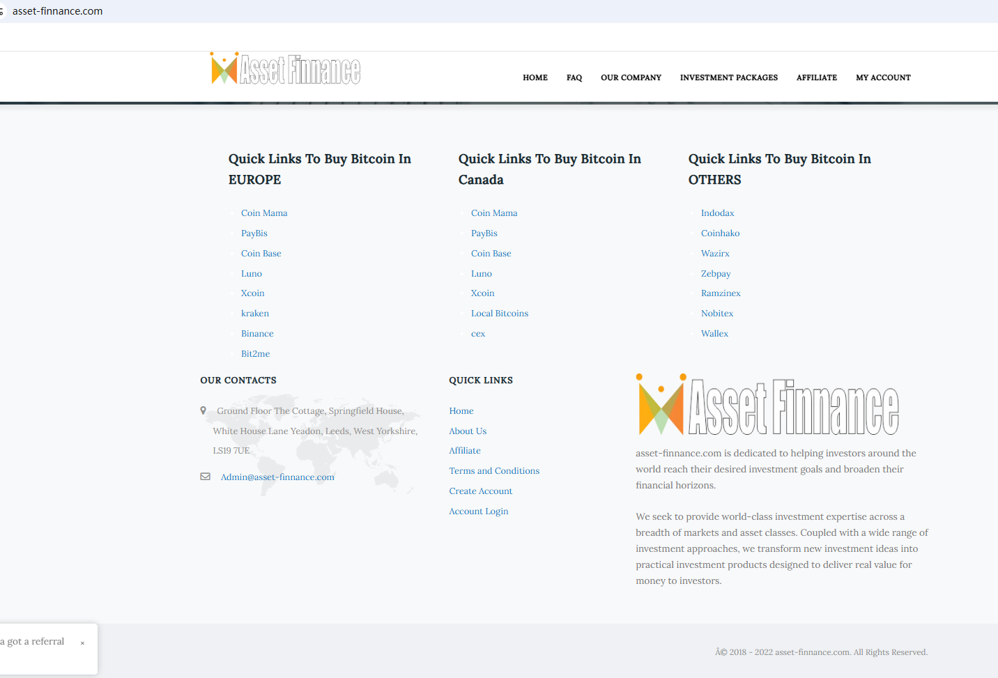 In fact, AssetFinnance is not regulated by any authority. Therefore, AssetFinnance is a scam.