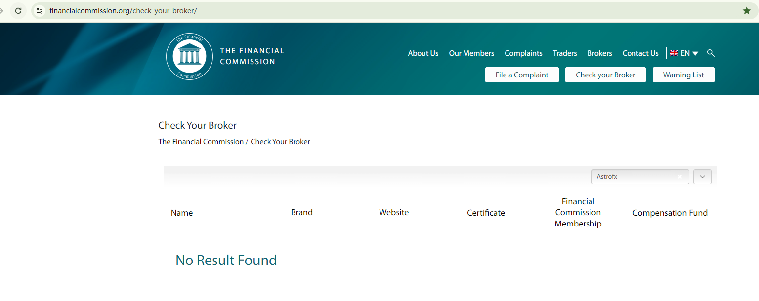 Astrofx portrays itself as a credible trading platform, citing three certificates from such authorities as the Mauritius Financial Services Commission (Mauritius FSC), the Companies House (CH), and the Financial Commission.However, our investigations into this entity found no corroborating results to support its claims. These three certificate appear to be falsified. Given its claim of registration with the CH, we examined the Financial Conduct Authority (FCA) register. Interestingly, Interestingly, any company with "Astrofx" in its name is marked as unauthorized. This raises serious concerns about the platform's legitimacy.In essence, Astrofx is not regulated by any governing body. Entrusting this broker with investors' funds is highly risky, as there are no legal protections in place to safeguard the funds.Astrofx appears to be a scam.