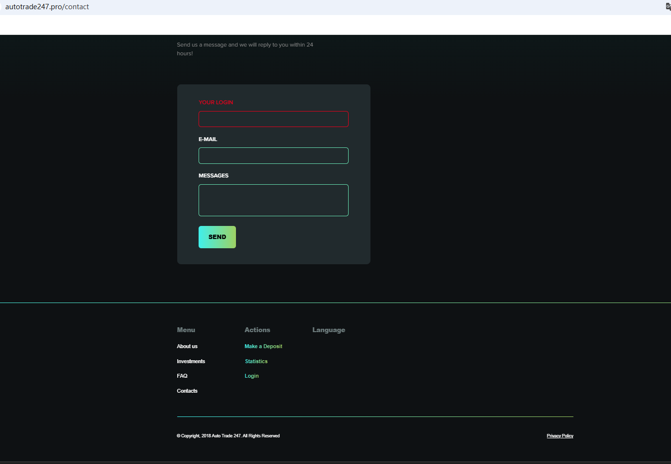 According to its website, the company claims to be reliable and provides a certificate from Companies House (CH). As we all know, CH only represents company registration and does not have the right to regulate foreign exchange. To obtain the right to exercise foreign exchange in the UK, it must be regulated by the FCA. Ironically, we found that the Financial Conduct Authority (FCA) issued a warning regarding AUTO TRADE 247, suspecting that this company may be offering financial services or products without the necessary authorization.