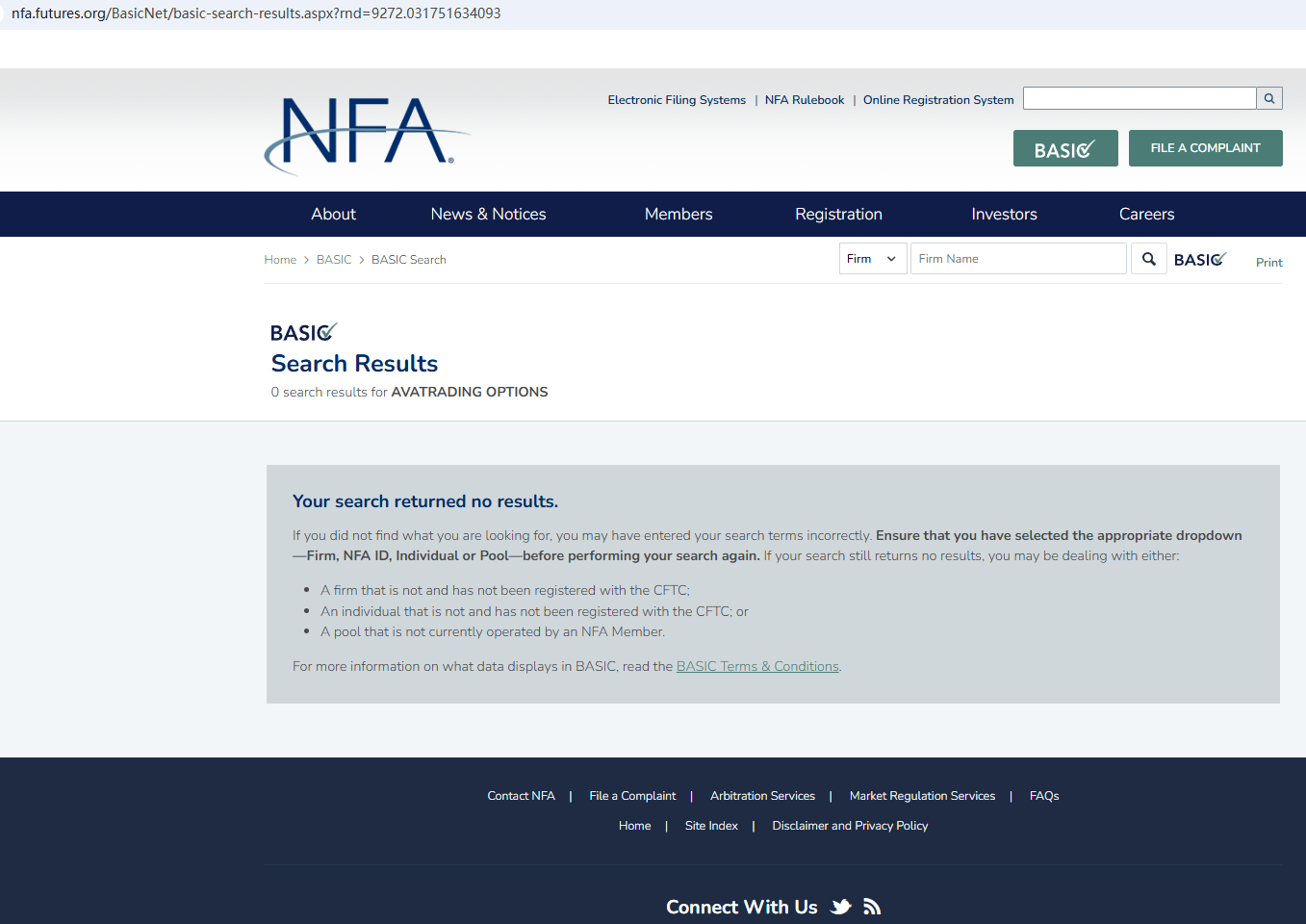 According to its website, it claims to be a reliable company, but it only states on its website that it is registered with the U.S. Securities and Exchange Commission (SEC). It is well known that the SEC does not have the authority to regulate foreign exchange. We also checked the National Association of Financial Markets (NFA) and found no matching information. Furthermore, the Financial Conduct Authority (FCA) issued a warning regarding AVATRADING OPTIONS, suspecting that this company may be offering financial services or products without the necessary authorization.