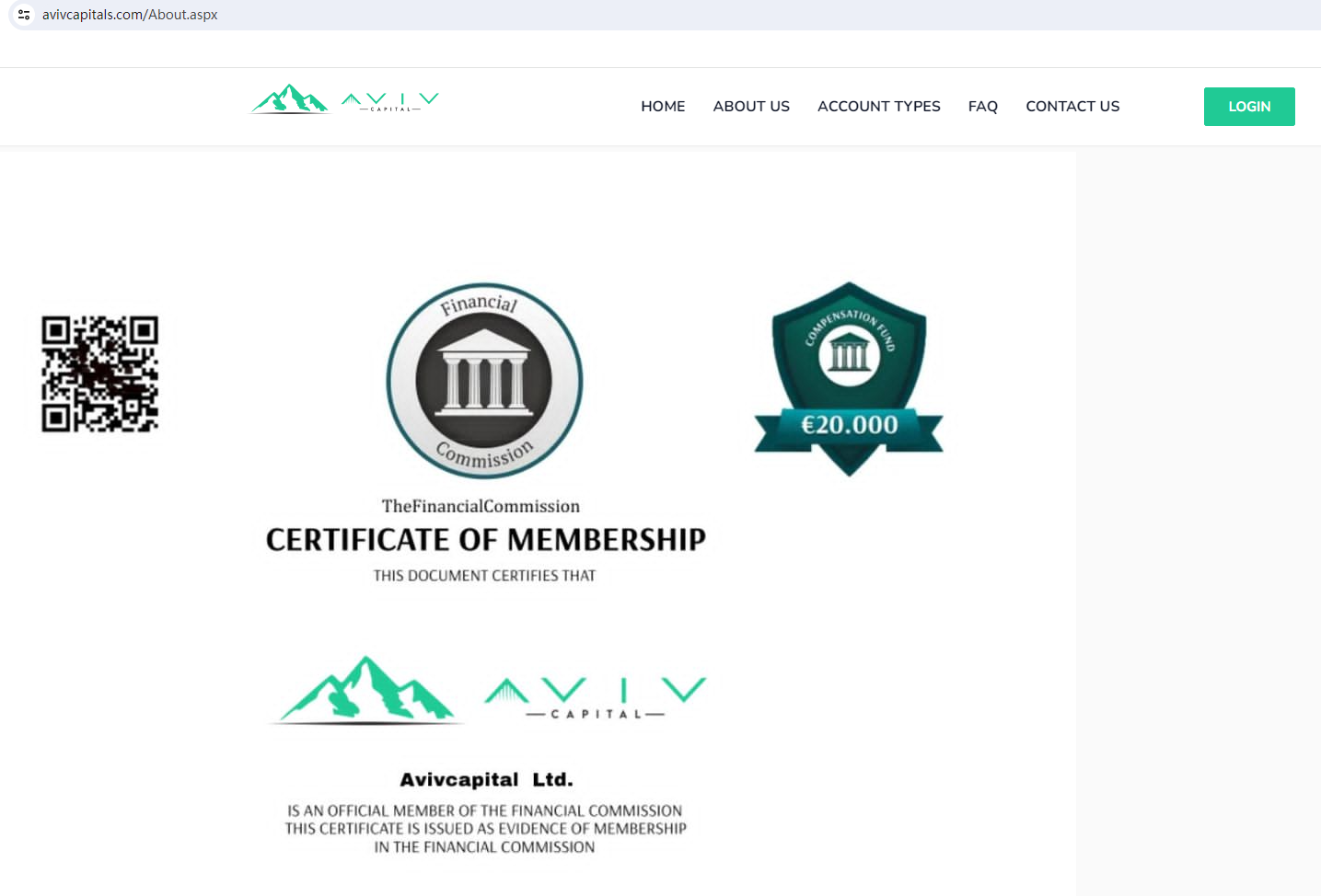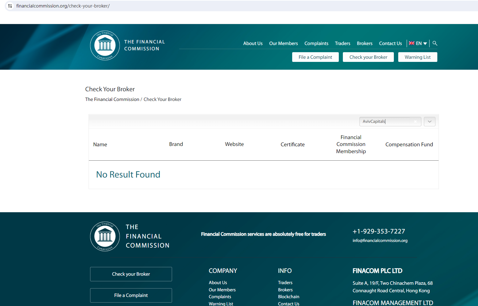 According to its website, AvivCapital is registered with Financial commission (FinCom), but no matching information was found in the FinCom, and FinCom does not regulate the business of financial derivatives brokers.