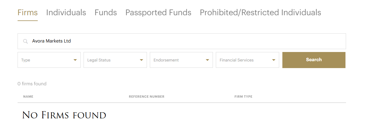 Furthermore, Checks with all relevant financial regulators in the UAE, including the Securities and Commodities Authority (SCA), the Dubai Financial Services Authority (DFSA), and the Central Bank of the UAE (CBUAE) show no record of Avora Markets or its operating entity was found under the jurisdiction of these regulatory bodies.