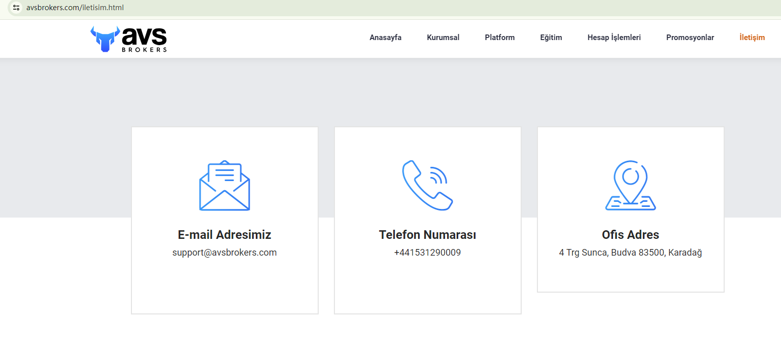 According to its website, it is located in Montenegro and the phone number area code it provides is the UK area code. Upon investigation, no matching information was found in the Capital Market Authority of Montenegro (SCMN) and Financial Conduct Authority (FCA).The truth is that AVS Brokers is not regulated by any regulators. Letting it hold or control investors' money is unsafe, and the money can not be protected by any laws.AVS Brokers is a scam.