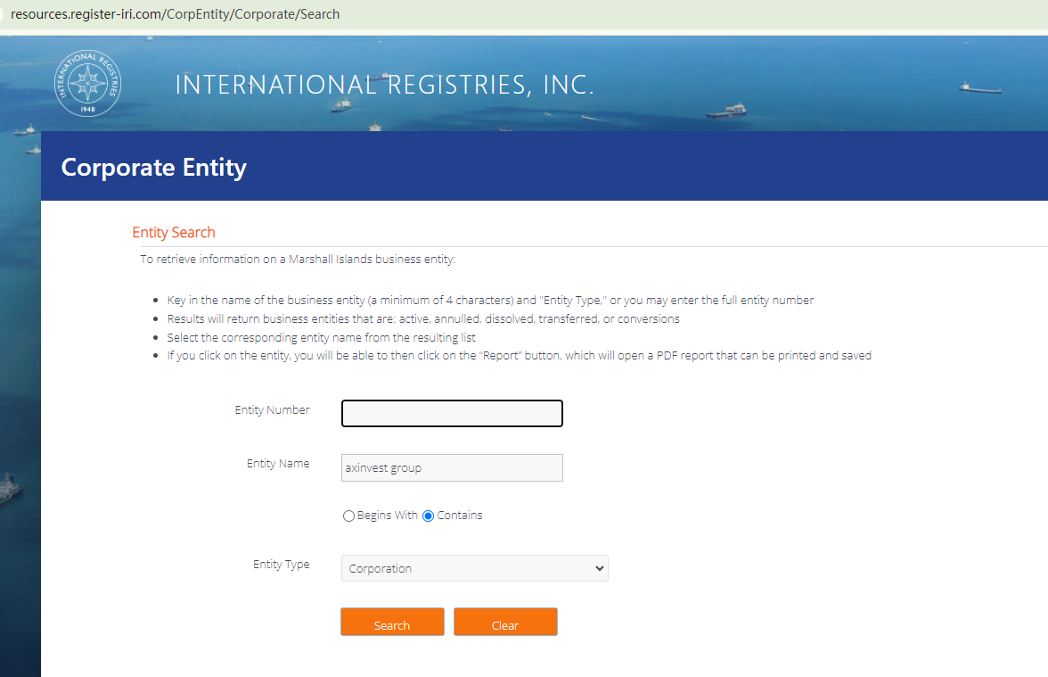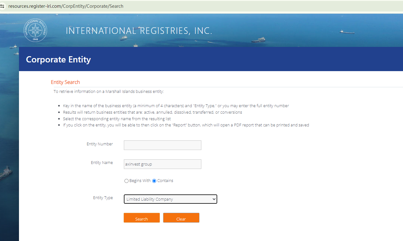 According to its website, it is located in the Marshall Islands, but upon investigation, no matching information was found in the Marshall Islands Registry (IRI).
