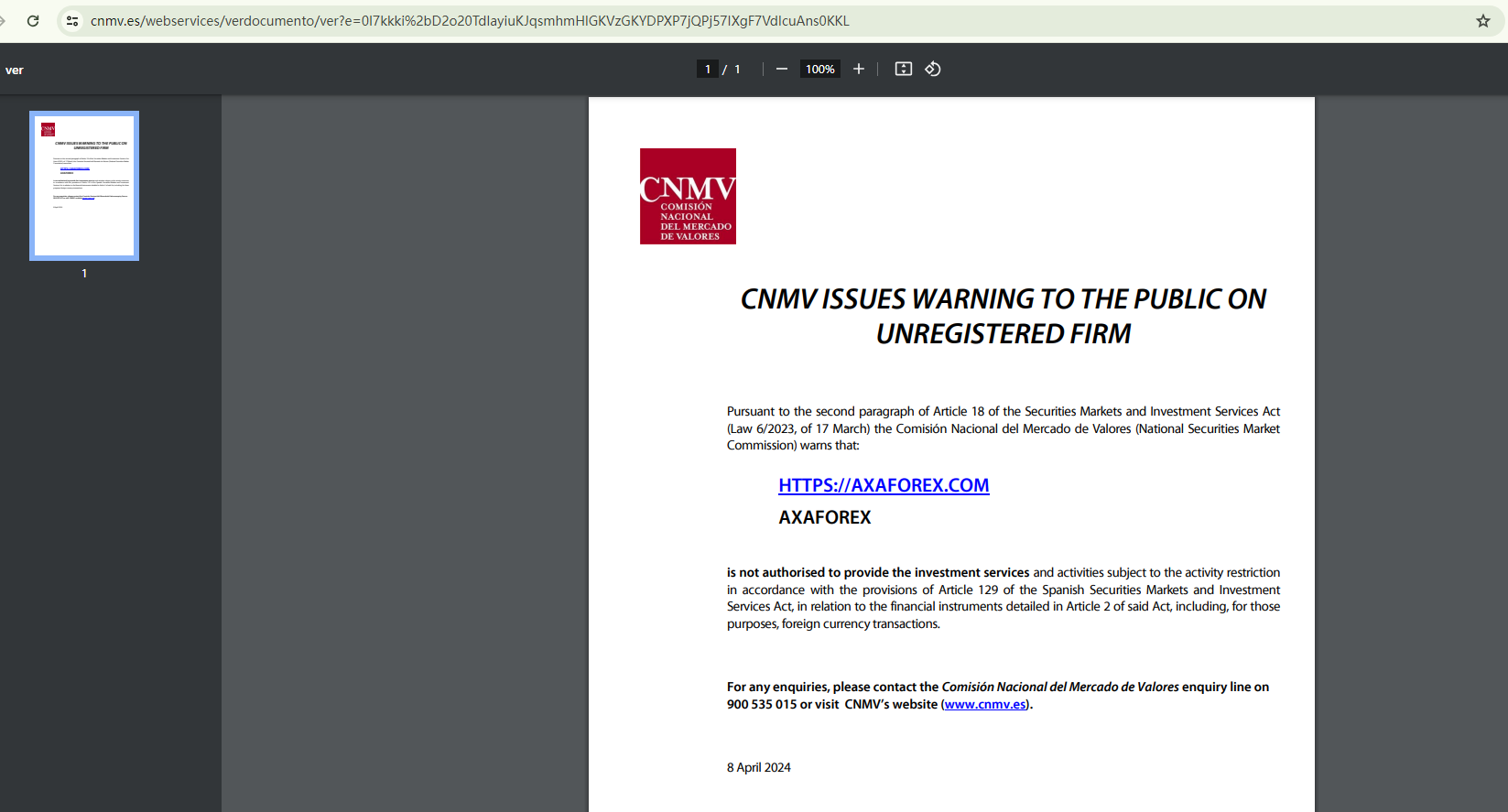 The truth is that Axaforex is not regulated by any regulators. Letting it hold or control investors' money is unsafe, and the money can not be protected by any laws.