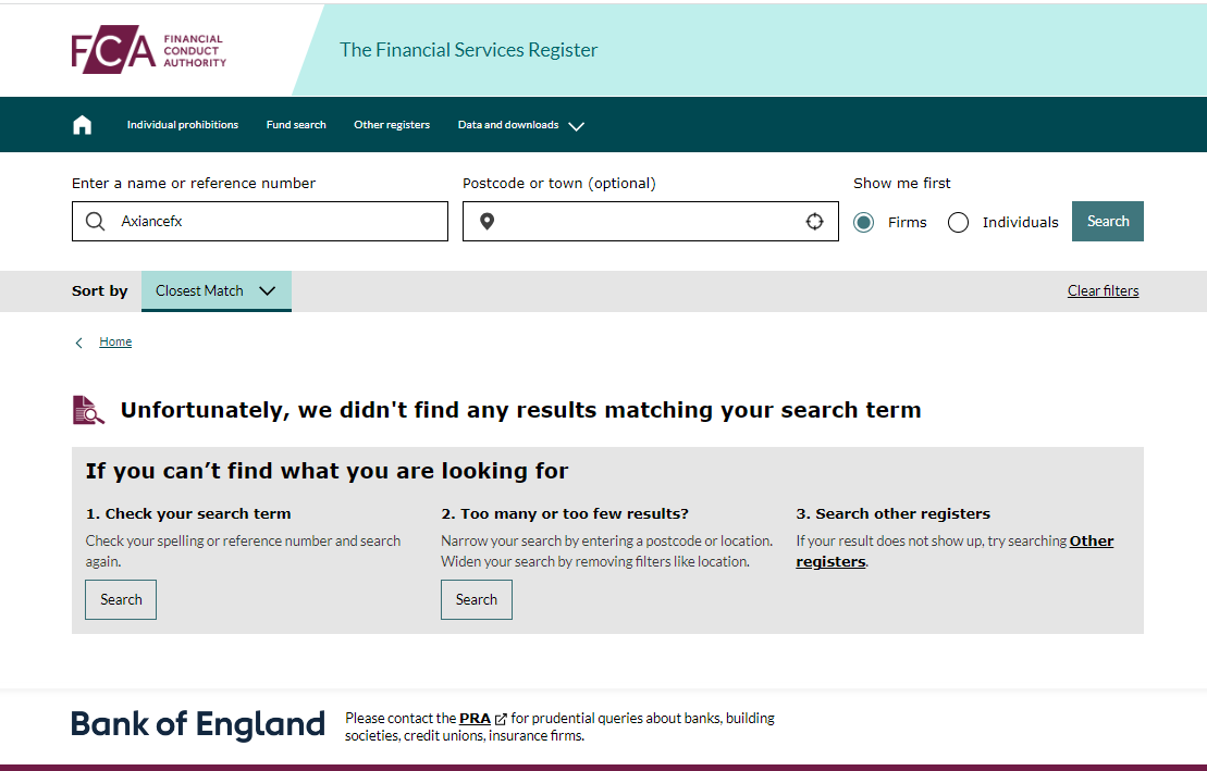 AxianceFX fails to disclose its regulatory information and licensing data, which is a clear scam indicator, as legitimate brokers always prominently display their accreditation and licenses to instill trust and transparency. This is a red flag. In an attempt to appear real, AxianceFX provides two addresses respectively in Canada and the UK. However, our search for this broker in the registers of the Financial Conduct Authority (FCA) and the Investment Industry Regulatory Organization of Canada (IIROC) didn't yield any results, further proving that AxianceFX operates outside the regulatory framework.In addition, the British Columbia Securities Commission (BCSC) and the Commission Nazionale per le Società e la Borsa (CONSOB) issued a warning against AxianceFX, stating that this broker is not registered to trade in, or advise on, securities or derivatives in BC.In essence, AxianceFX is not regulated by any governing body. Entrusting this broker with investors' funds is highly risky, as there are no legal protections in place to safeguard the funds. It is unequivocally a scam.