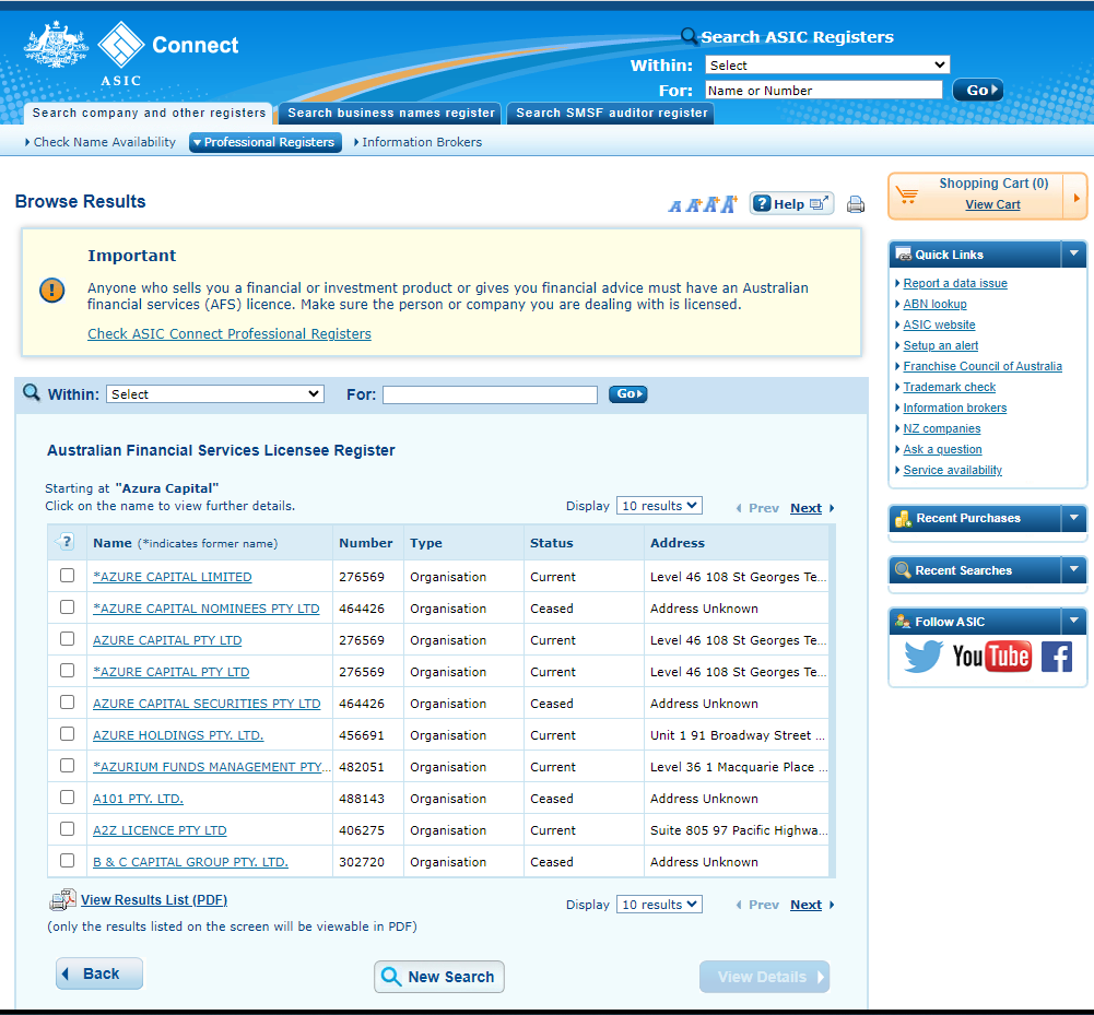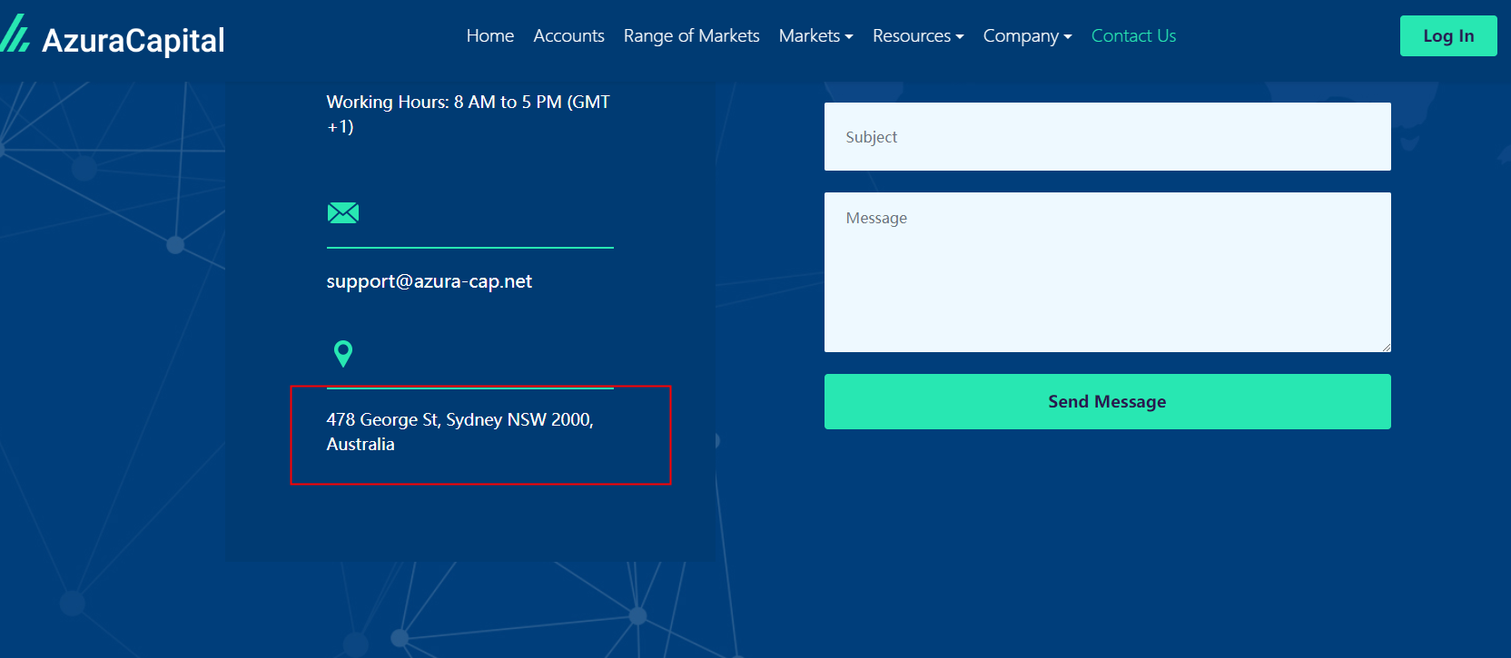 According to its website, Azura Capital is located in Australia. However there is no matching information was found in the Australian Securities & Investment commission (ASIC).