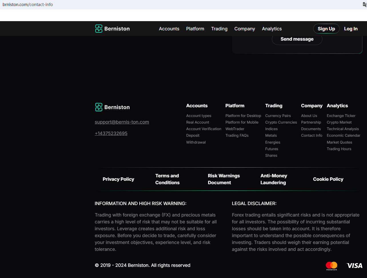In essence, Berniston aka Berniston Investments is not regulated by any governing body. Entrusting it with investors' funds is highly risky, as there are no legal protections in place to safeguard the funds.