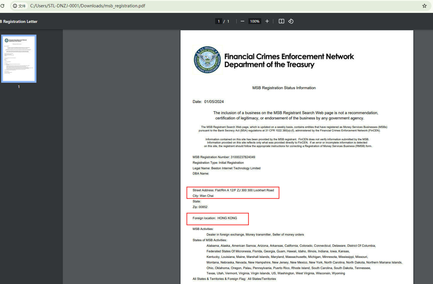 This broker only provides an MSB registration with the Financial Crimes Enforcement Network (FINCEN) as proof of its legitimacy and security. However, it is crucial to note that the FinCEN serves as the financial intelligence unit of the United States, responsible for receiving, analyzing, and disseminating disclosures of financial information in order to combat money laundering and terrorism financing. This agency doesn't license or oversee the forex market. Furthermore, the MSB registration is not a recommendation, certification of legitimacy, or endorsement of the business by any government agency. Therefore, in the context of online trading, an MSB registration does not carry the same weight as a license from a financial regulator in affirming this company's legitimacy.