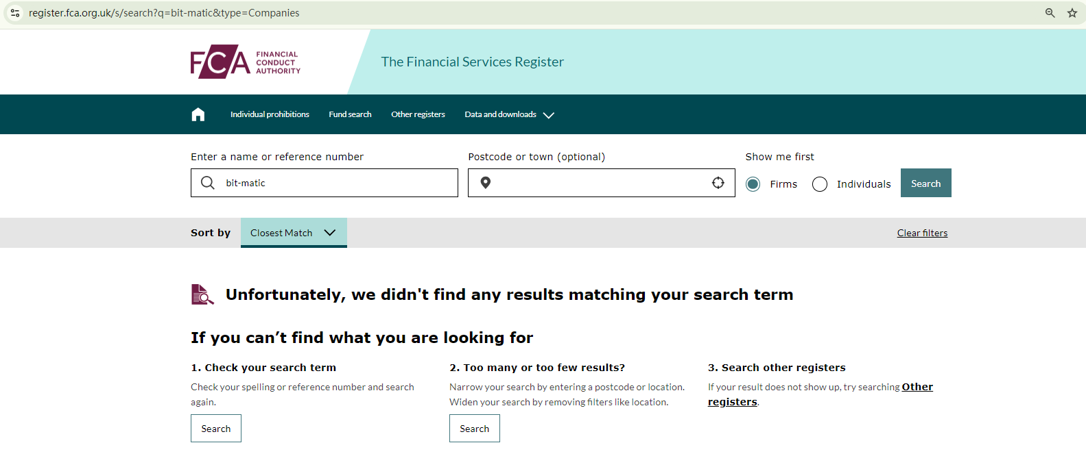 Bitmatic doesn't provide any valid licensing information to demonstrate its legitimacy. While it claims to be located in the UK, there are no indications that it is registered with the Financial Conduct Authority (FCA).