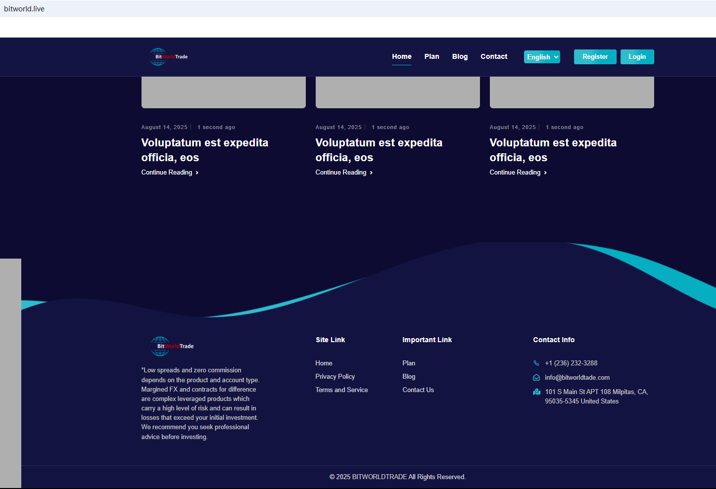 In essence, BitWorld Trade is not regulated by any governing body. Entrusting it with investors' funds is highly risky, as there are no legal protections in place to safeguard the funds. BitWorld Trade appears to be a scam.