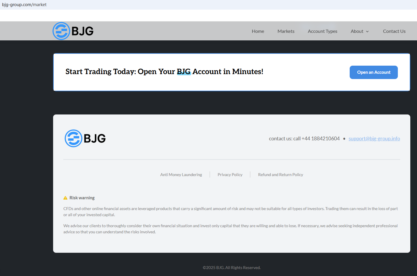 According to its website, it has been regulated in the UK since 2005. However, we found that the Financial Conduct Authority (FCA) issued a warning regarding BJG, suspecting that this company may be offering financial services or products without the necessary authorization.