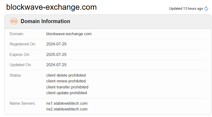 According to its website, it claims to have been established in 2014 and incorporated in 2020. And no valid regulatory information is displayed on the website, which is itself very unreliable. Upon investigation, we found that its domain name was only registered in 2024. In addition, the National Securities Market Commission (CNMV) issued a warning against BLOCKWAVE EXCHANGE, believing this company might be providing financial services or products without proper authorization.
