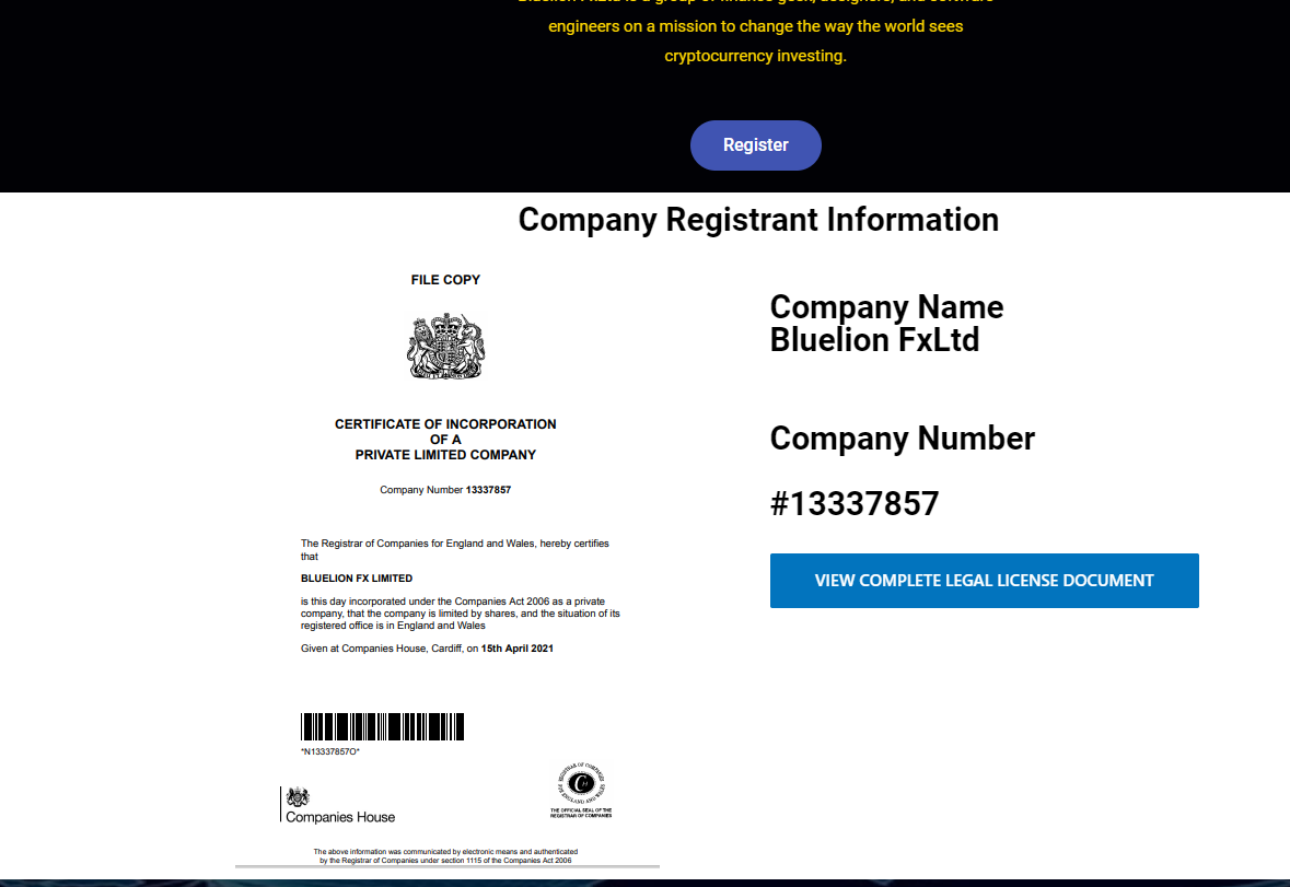BLUELION FXLTD claims to be a reliable company without presenting any information about its regulation. It shows that it is registered with the Companies House (CH), but registration with the CH does not mean that it has financial qualifications, so CH cannot replace the authorization to practice.