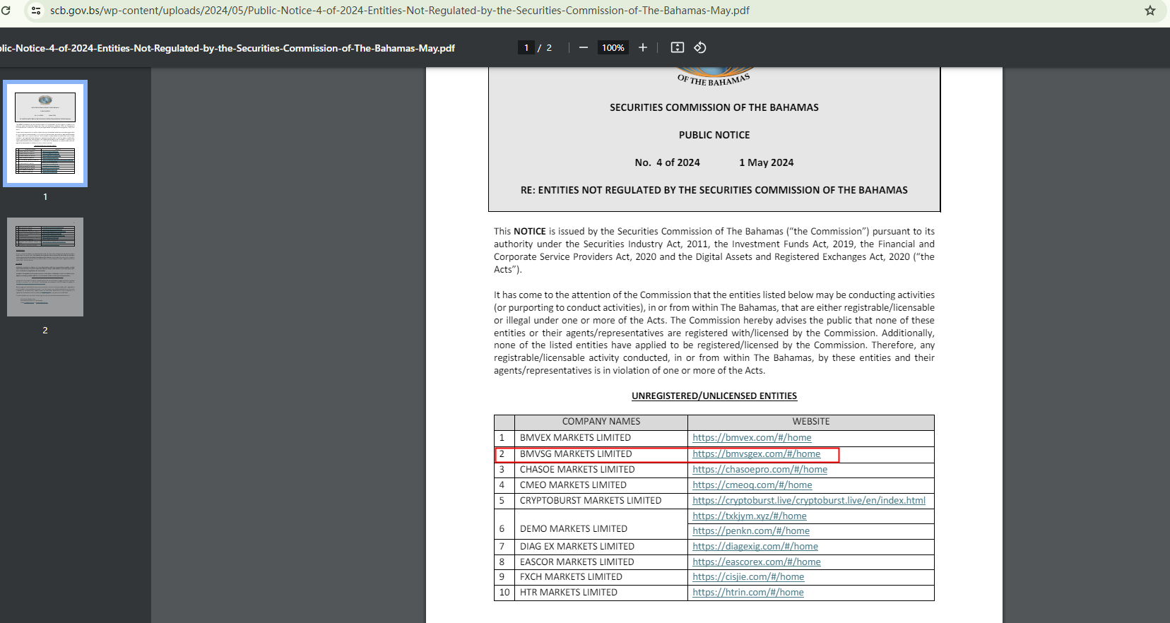 First and foremost, its claims of being licensed by the Securities Commission of the Bahamas (SCB) have been refuted by the SCB itself. BMVSG is included in the warning list published by the SCB, which explicitly indicates that this entity is not authorized by the financial watchdog. This serves as strong evidence of its dishonesty.