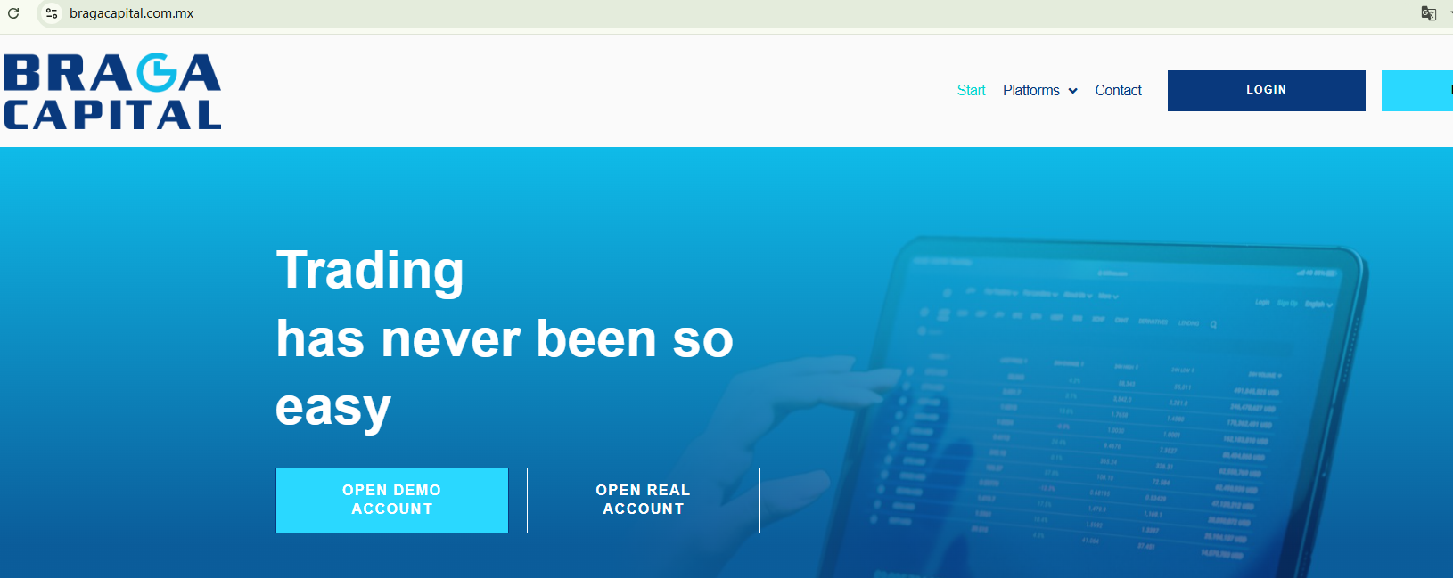 BRAGA CAPITAL FX LLC claims to be registered with the Financial Services Authority of St. Vincent and the Grenadines (SVG FSA) under registration number 2198 LLC 2022. While it is true that corresponding records exist in the SVG FSA register, it is crucial to note that the offshore financial watchdog has explicitly stated that it neither issues licenses for forex trading or brokerage nor does it regulate entities involved in such activities. Therefore, BRAGA CAPITAL FX LLC remains unsupervised by the relevant regulatory body.Furthermore, the Comisión Nacional del Mercado de Valores (CNMV) has added BRAGA CAPITAL FX LLC to its warning list for providing investment services without authorization.In essence, BRAGA CAPITAL FX LLC is not regulated by any governing body. Entrusting this broker with investors' funds is highly risky, as there are no legal protections in place to safeguard the funds. It is unequivocally a scam.