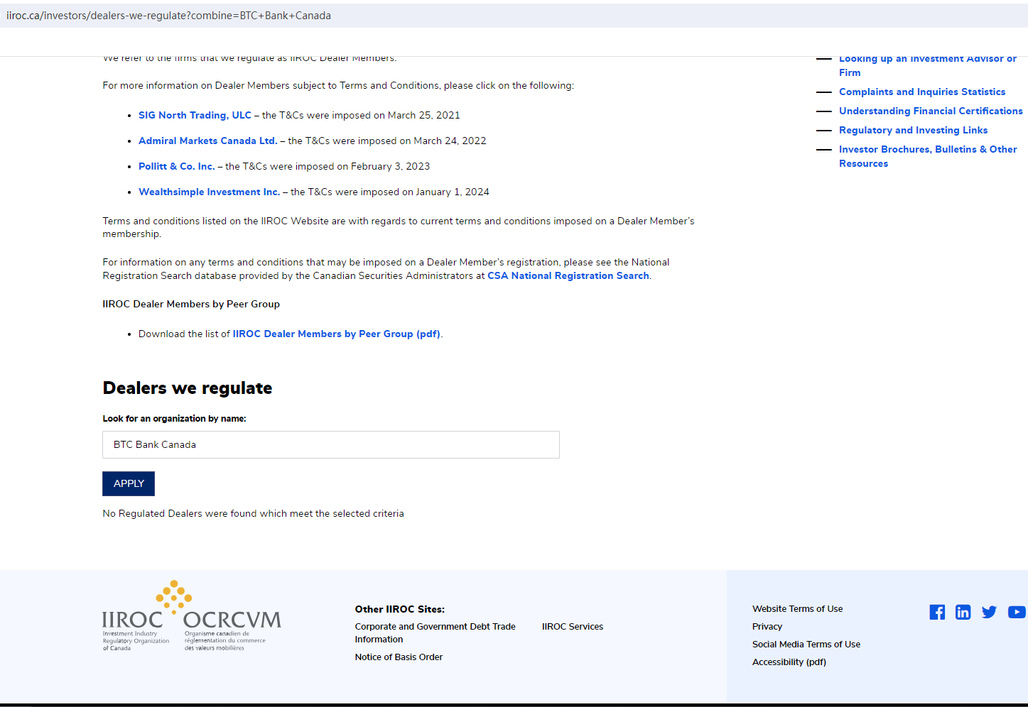The truth is that BTC Bank Canada is not regulated by any regulators. Letting it hold or control investors' money is unsafe and the money cannot be protected by any laws.