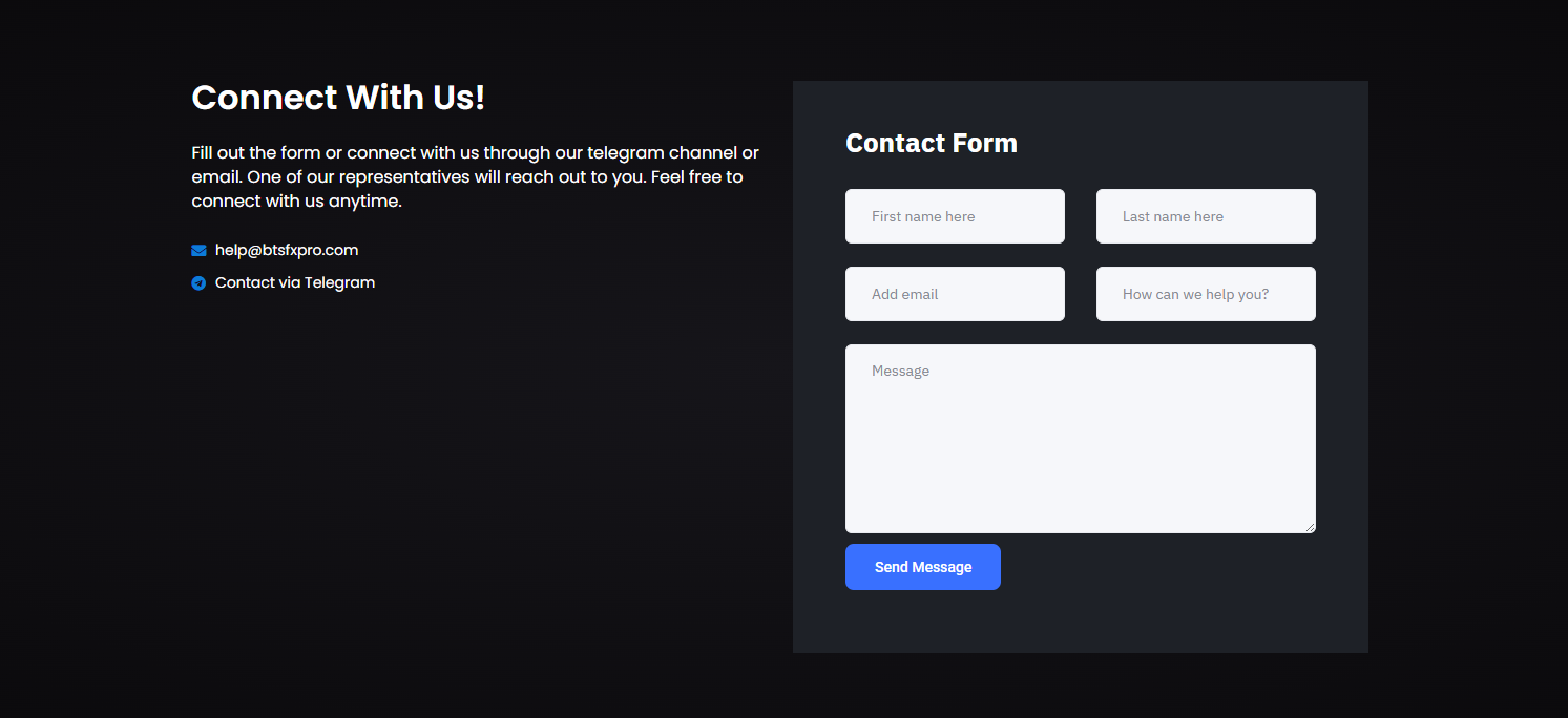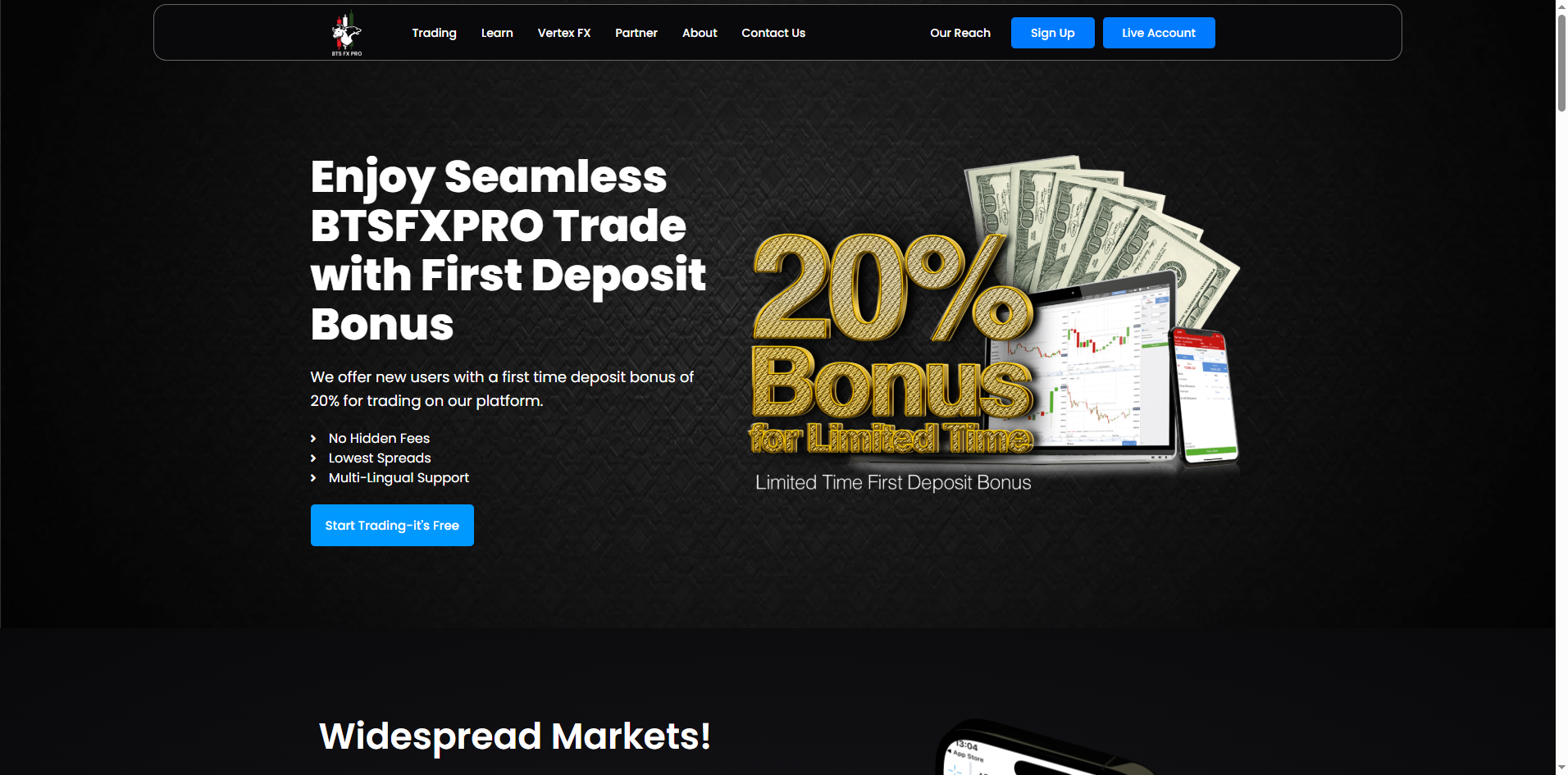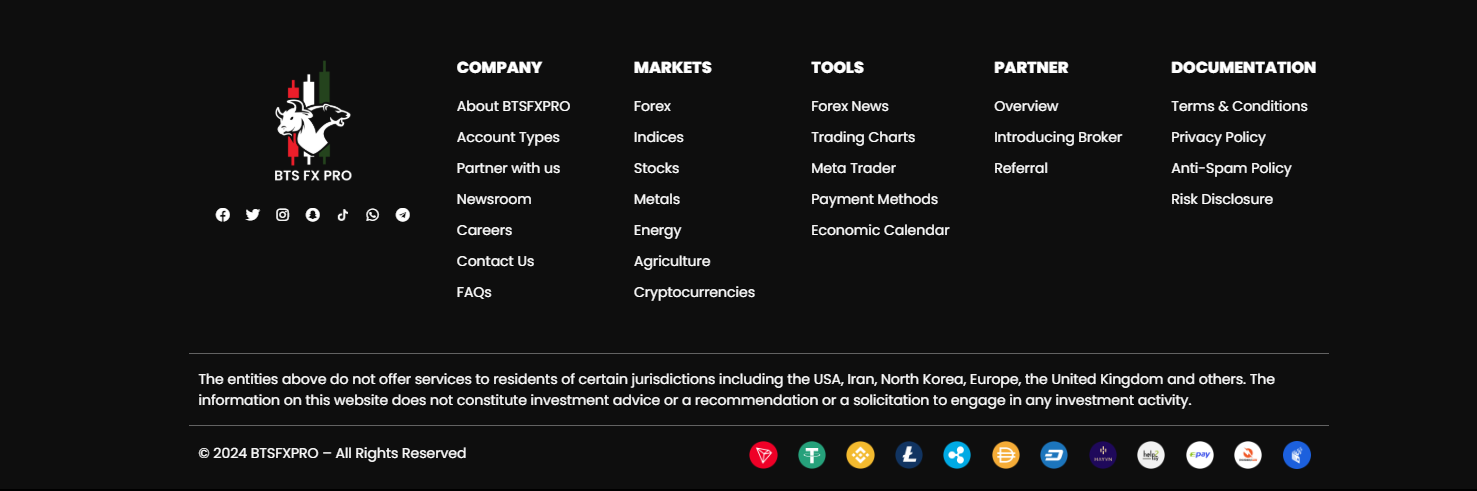 BTSfxpro’s website provides no regulatory disclosures, not even a legal entity name and its registered address. This complete lack of basic corporate information makes it impossible to determine where the platform is based or under which authority it might claim to operate. As a result, we are unable to verify any licensing status through official regulatory databases. The absence of transparent, verifiable details strongly suggests that BTSfxpro likely holds no valid forex trading license and may be operating illegally.