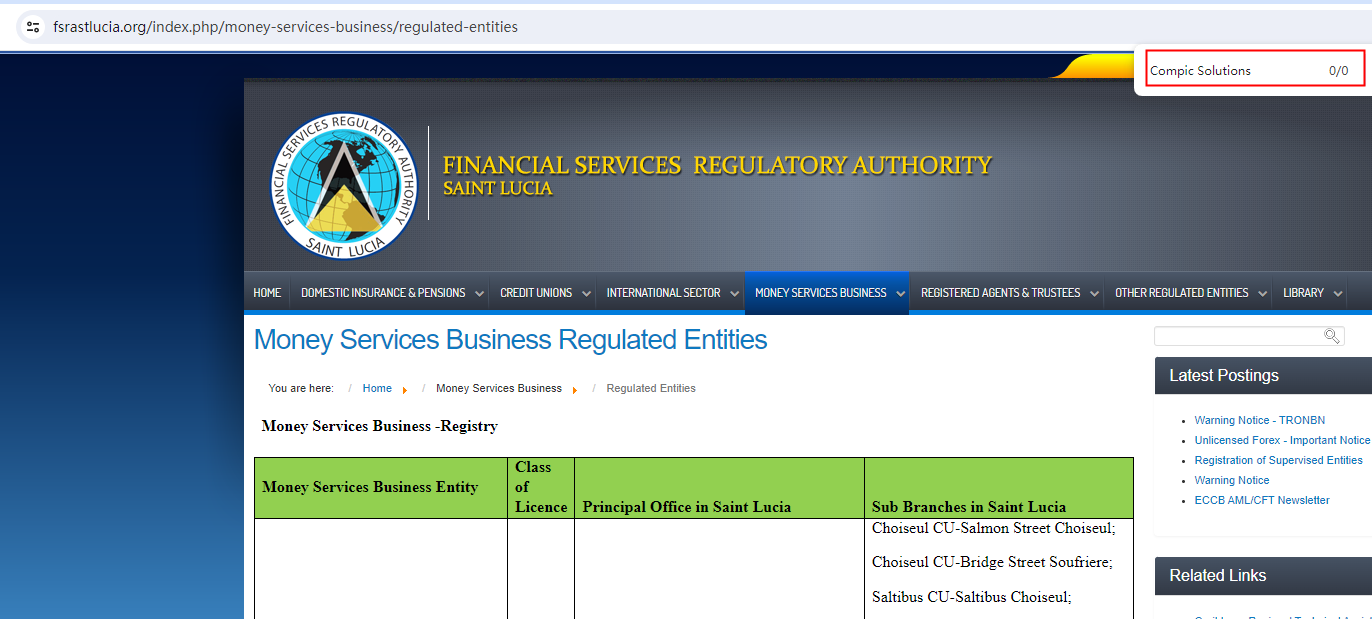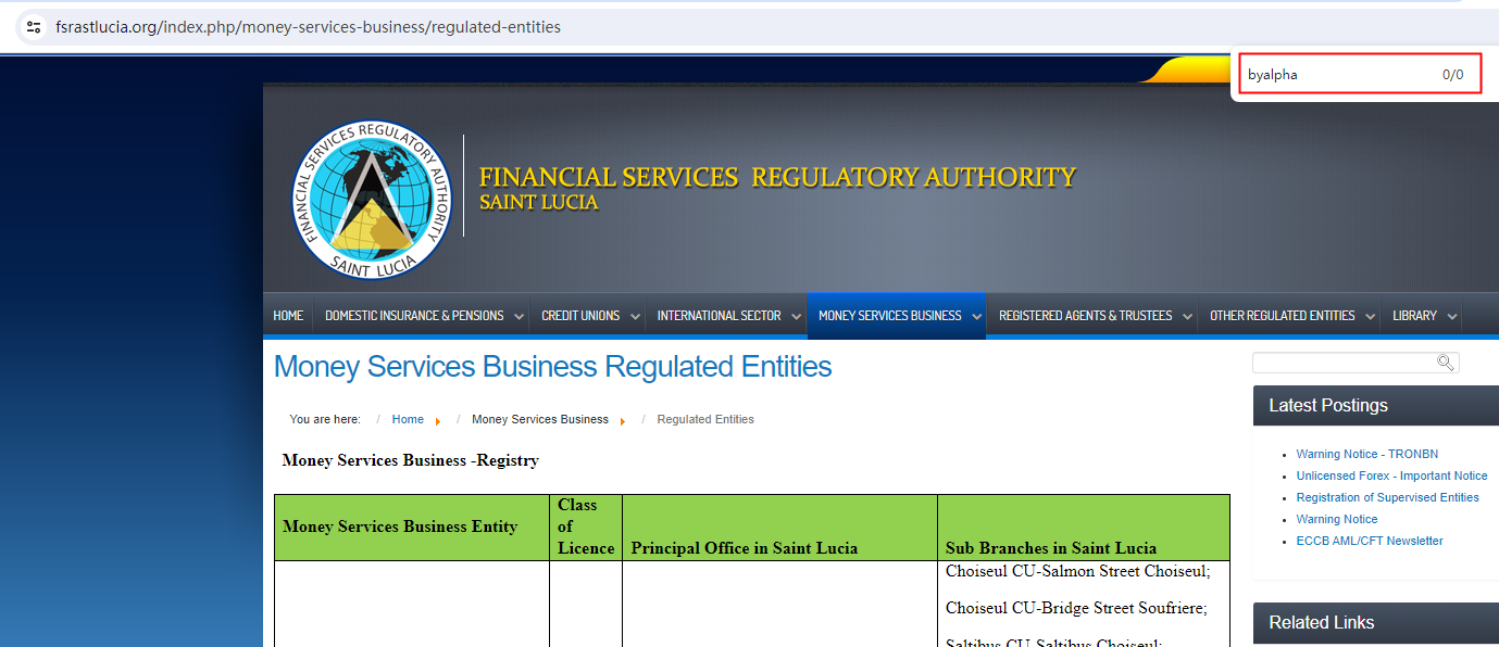 ByAlpha claims to be operated by Compic Solutions LTD, which is registered in Saint Lucia, we searched the Financial Services Regulatory Authority (FSRA) but found no matching results.